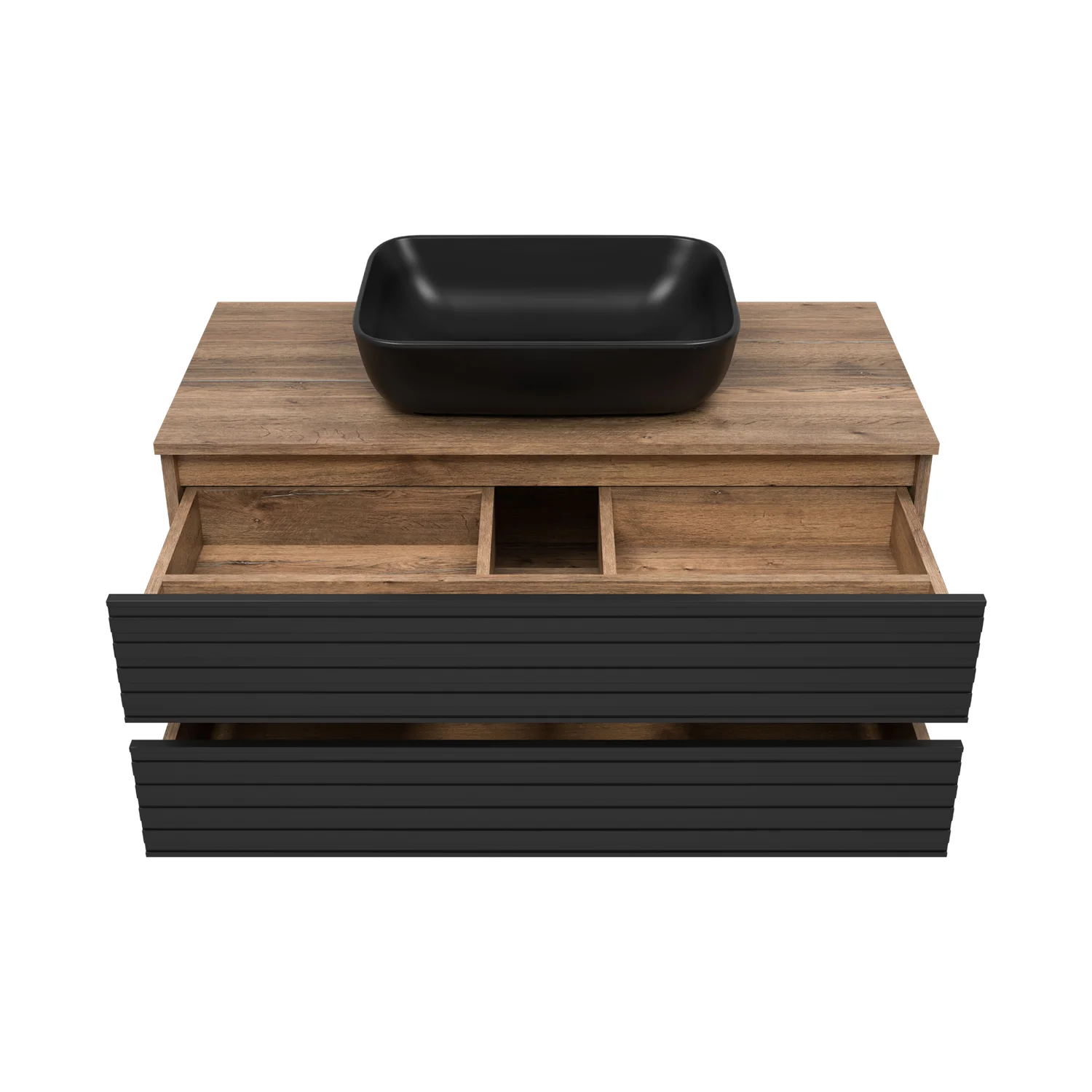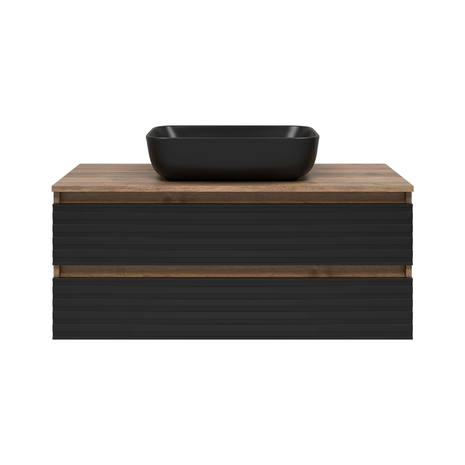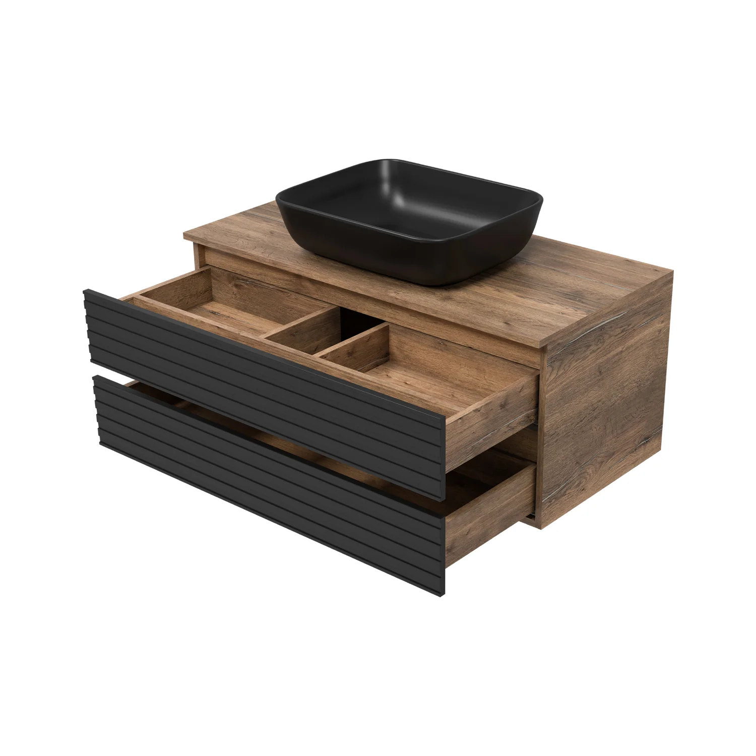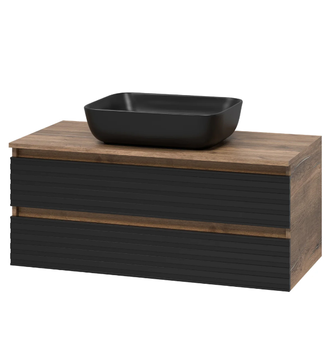 Тумба подвесная с раковиной Brevita Dakota 100 дуб гал черный кварц УТ000014653