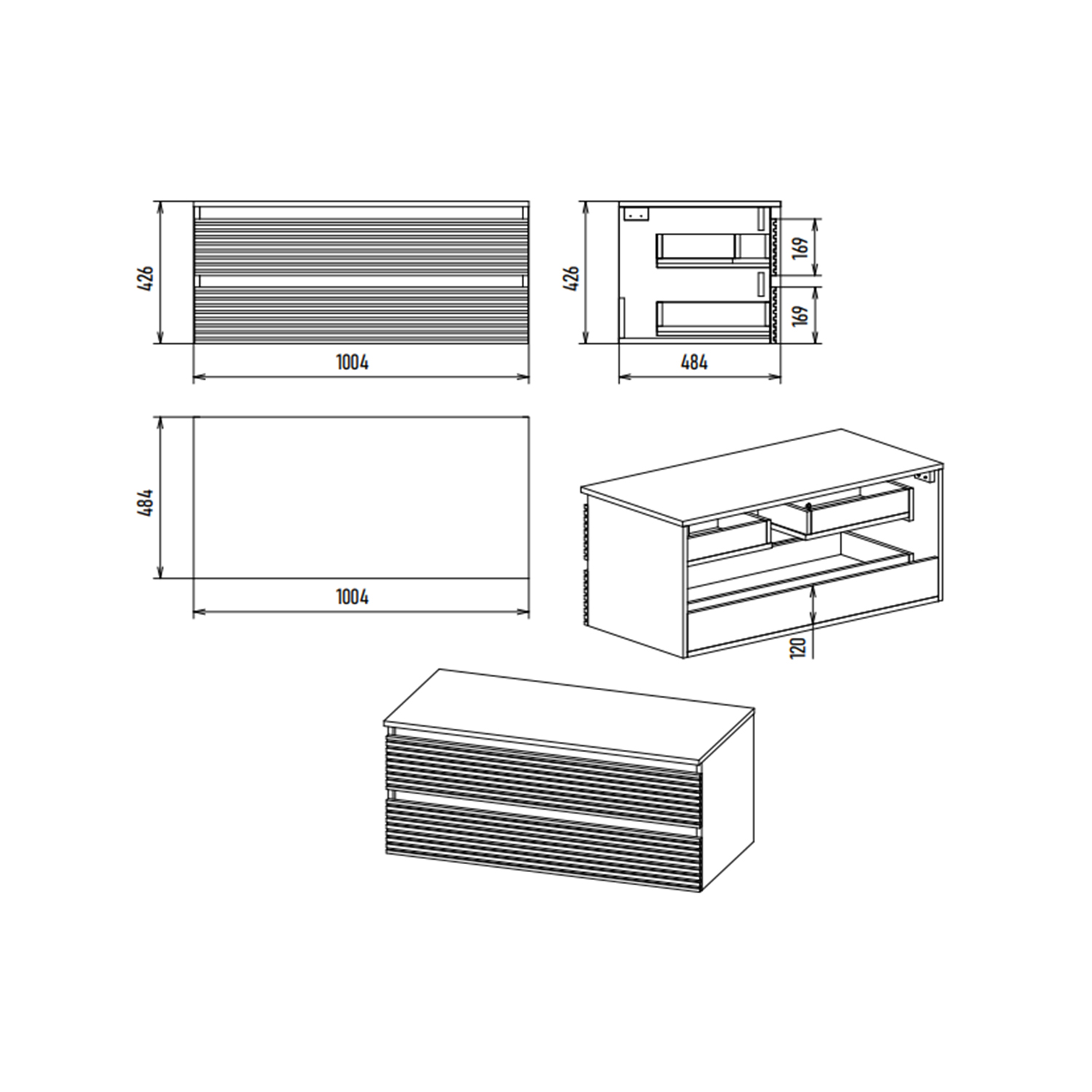 - Размер тумбы, мм (ш/г/в): 1000x480x425