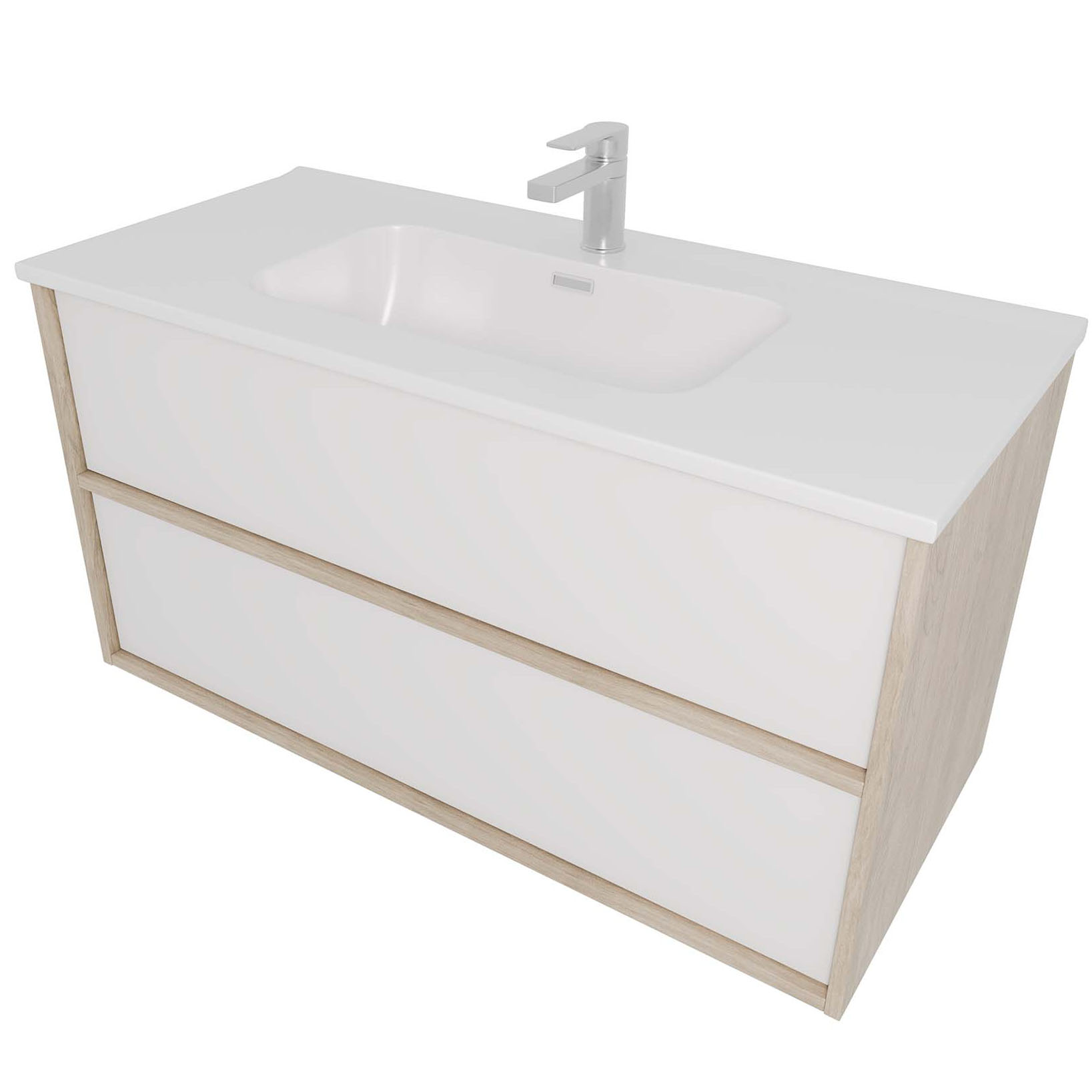 Тумба с раковиной Акватек Либра 100 см дерево/ белый матовый AQ66100-DO-MW