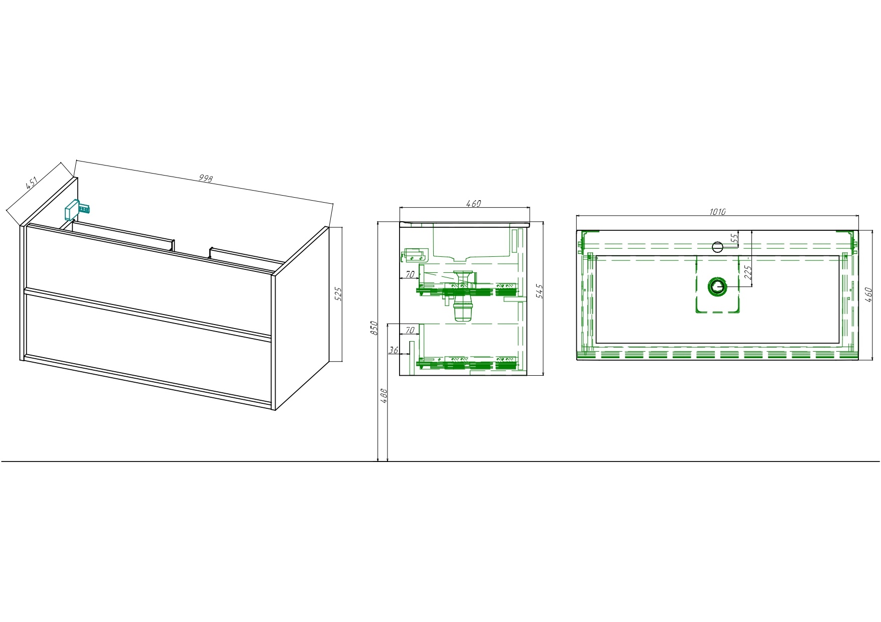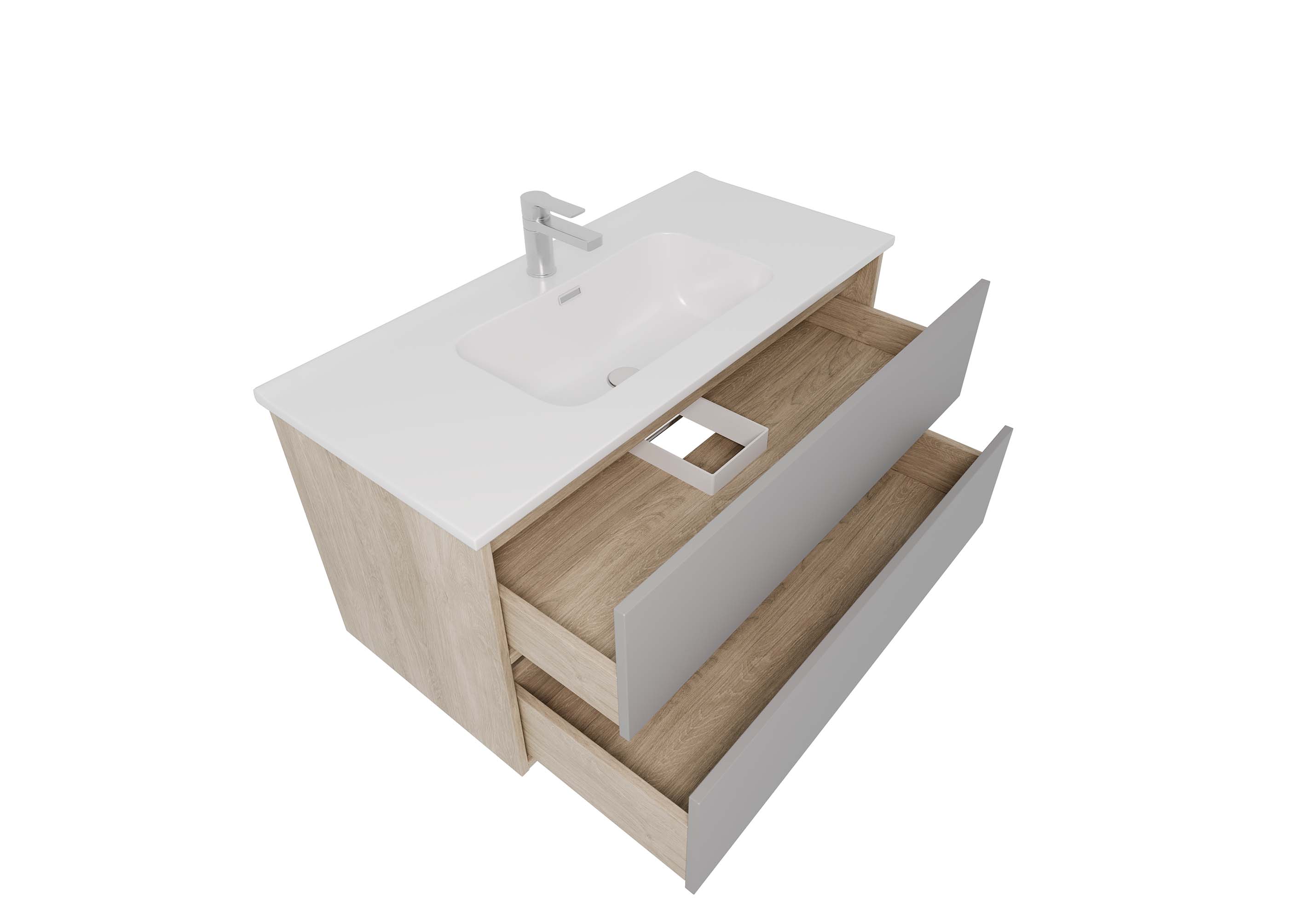 Благодаря эргономичным ящикам с пластиковым ограждением сифона внутреннее пространство тумбы используется с максимальной пользой.