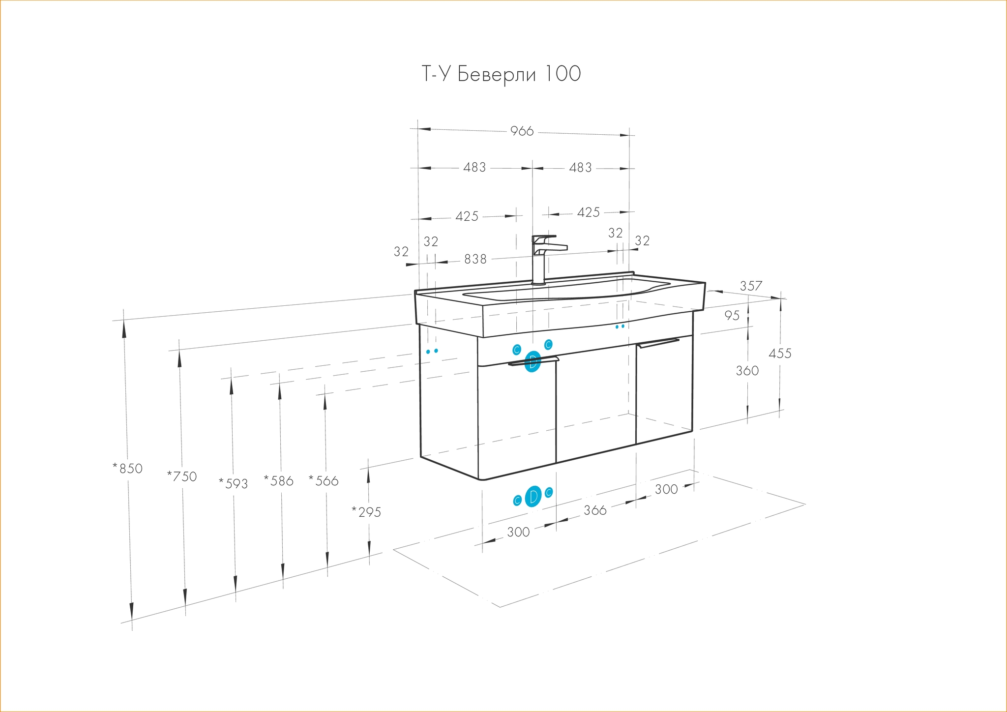 Тумба с раковиной Aquaton Беверли 100 см (Беверли) белый 1A2367K0BV010