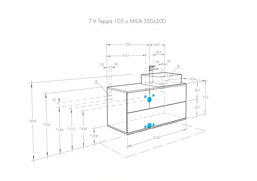 Тумба с раковиной Aquaton Терра 105 см (Мила) дуб кантри/ антрацит 1A2469K1TEKA0