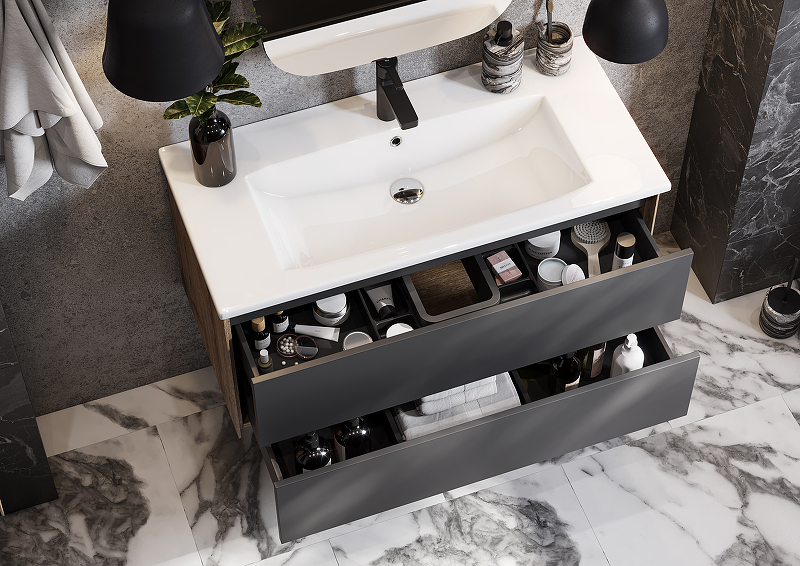 Тумба с раковиной Aquaton Сохо 100 см (Элина) дуб веллингтон графит софт 1A2582K1AJA00