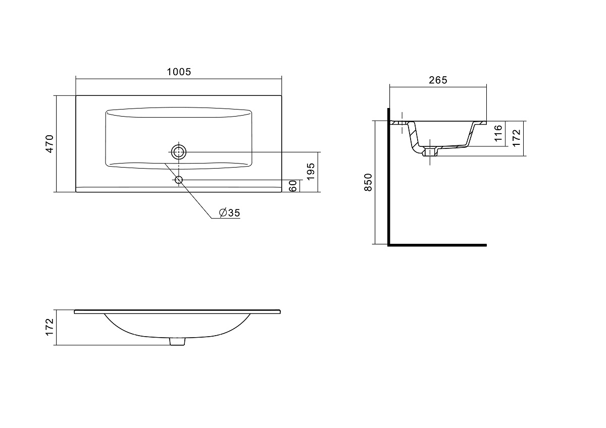 | Раковина | SANTEK Элина 100,5х47 см фарфор |