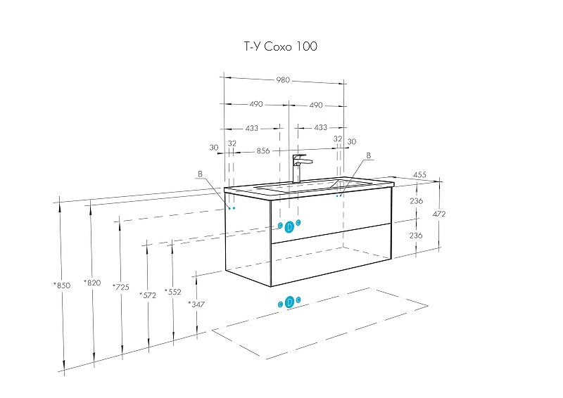 Тумба с раковиной Aquaton Сохо 100 см (Элина) слэйт галька серая 1A2582K1AJ9A0