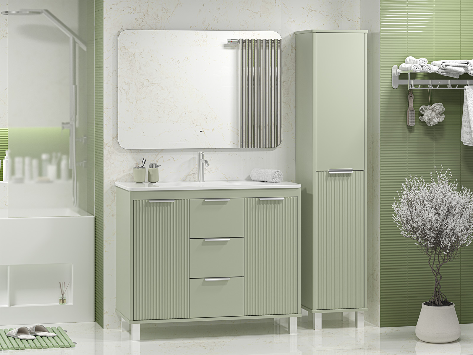 Тумба с раковиной Brevita Risacca Pistachio 100 см зеленый УТ000026422