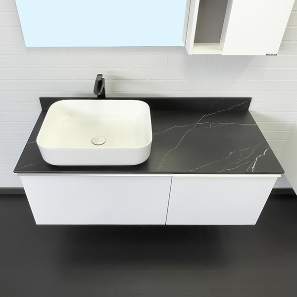 Тумба с раковиной Comforty Милан 120 (T-Y9378) белый глянец столешница Калакатта Блэк 00-00014006