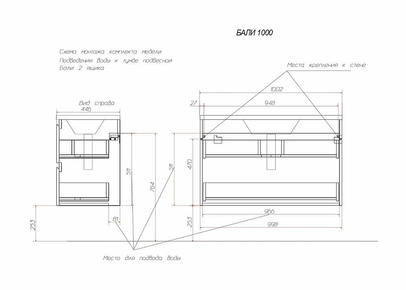 Тумба с раковиной Эстет Bali 100 см ФР-00002083