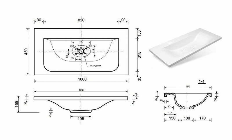| Раковина | Литьевой мрамор Бали 100 |