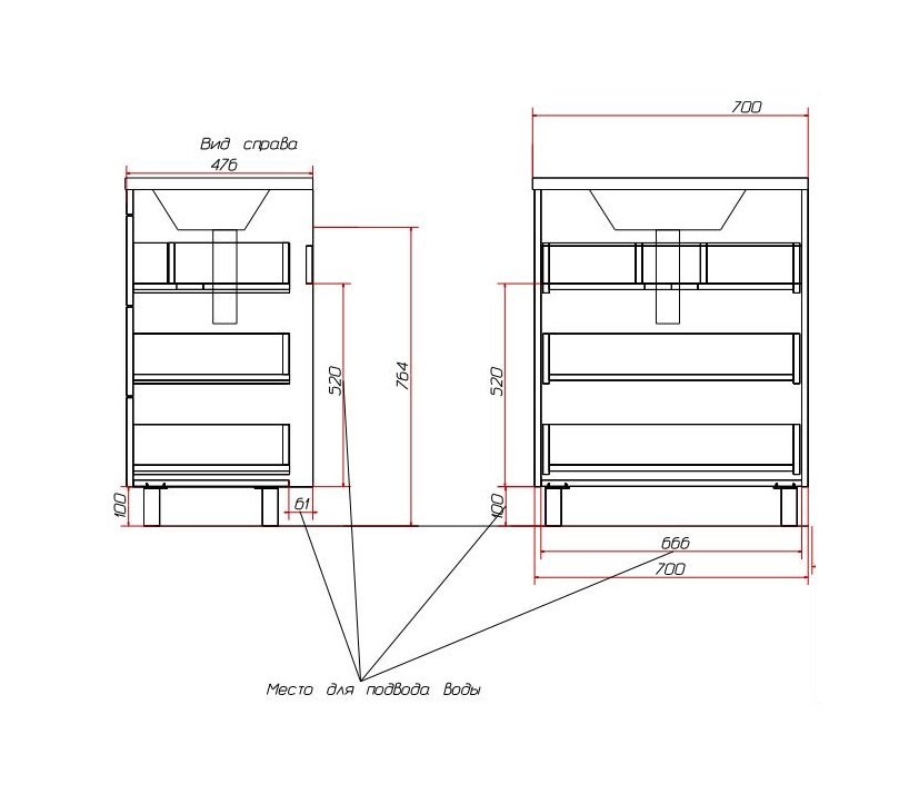 | Система хранения | 3 ящика |