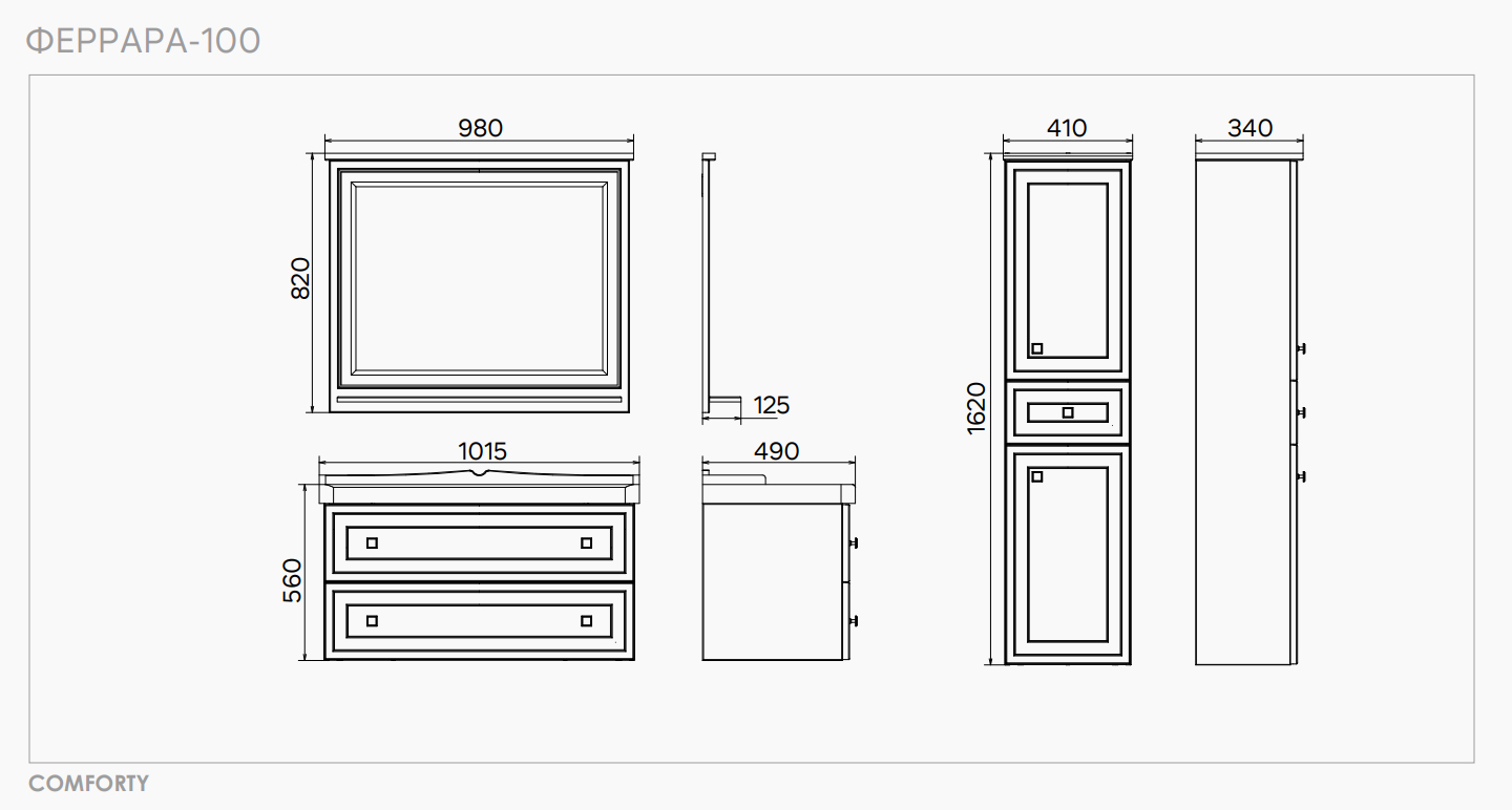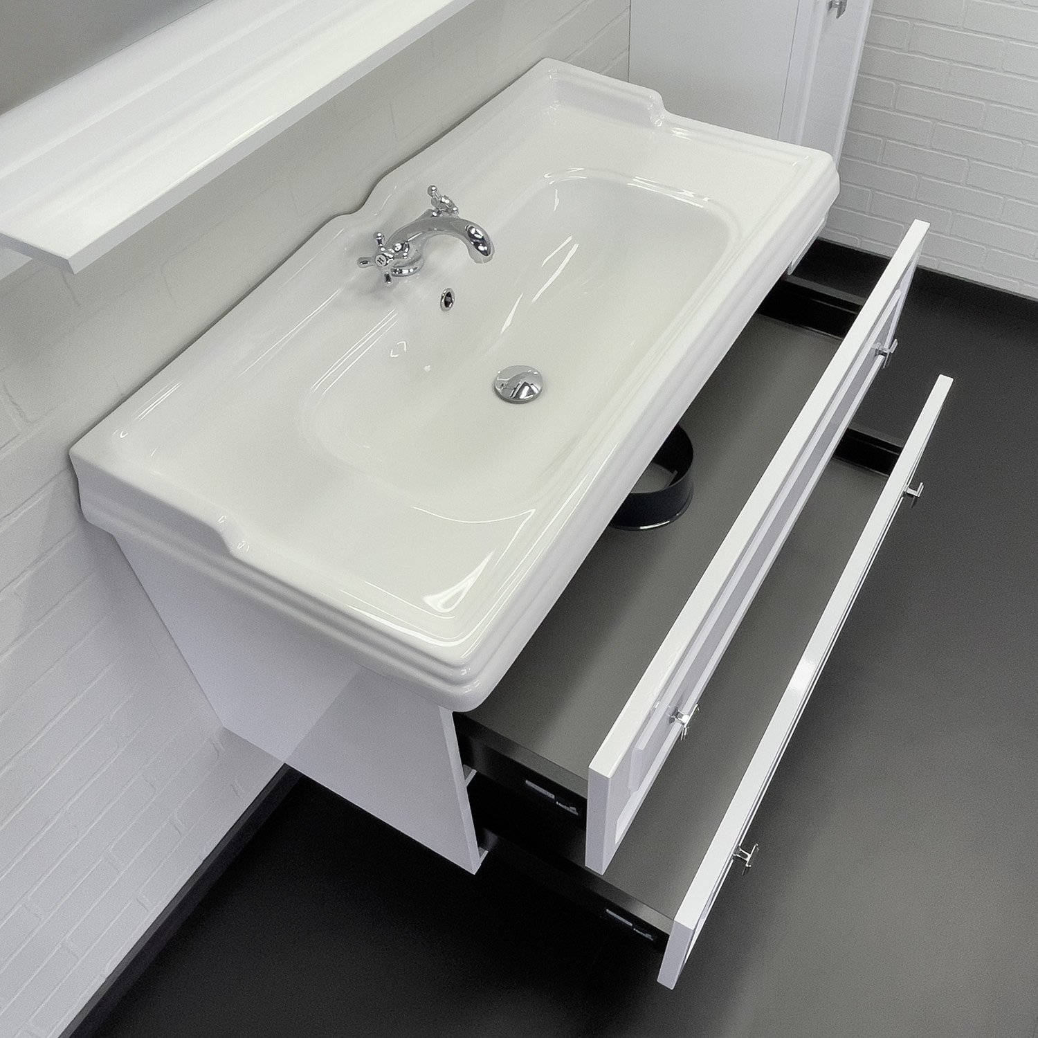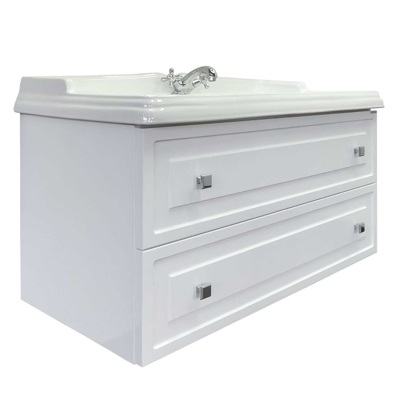 Тумба с раковиной подвесная Comforty Феррара 100 (3310) белый глянец 00-00020308