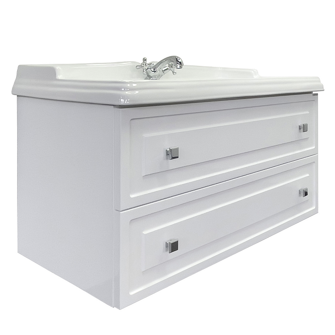 Тумба комплектуется раковиной в классическом стиле идеально белого цвета