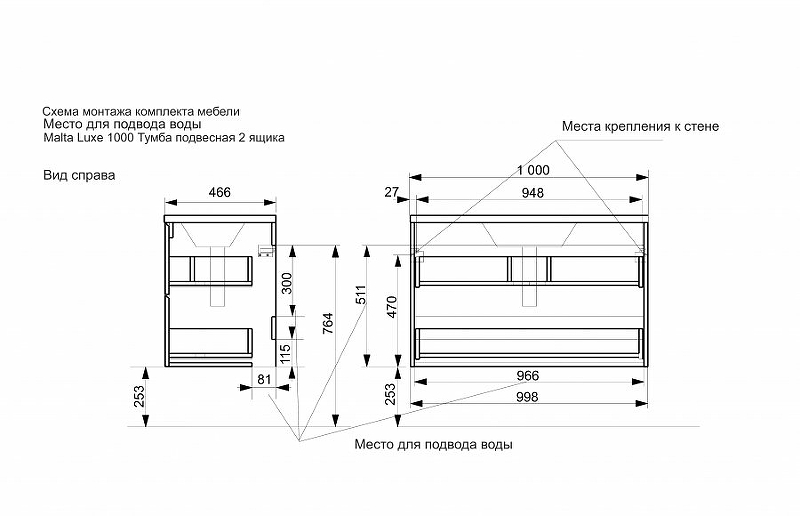 Тумба с раковиной подвесная Эстет Malta 100 см ФР-00007060