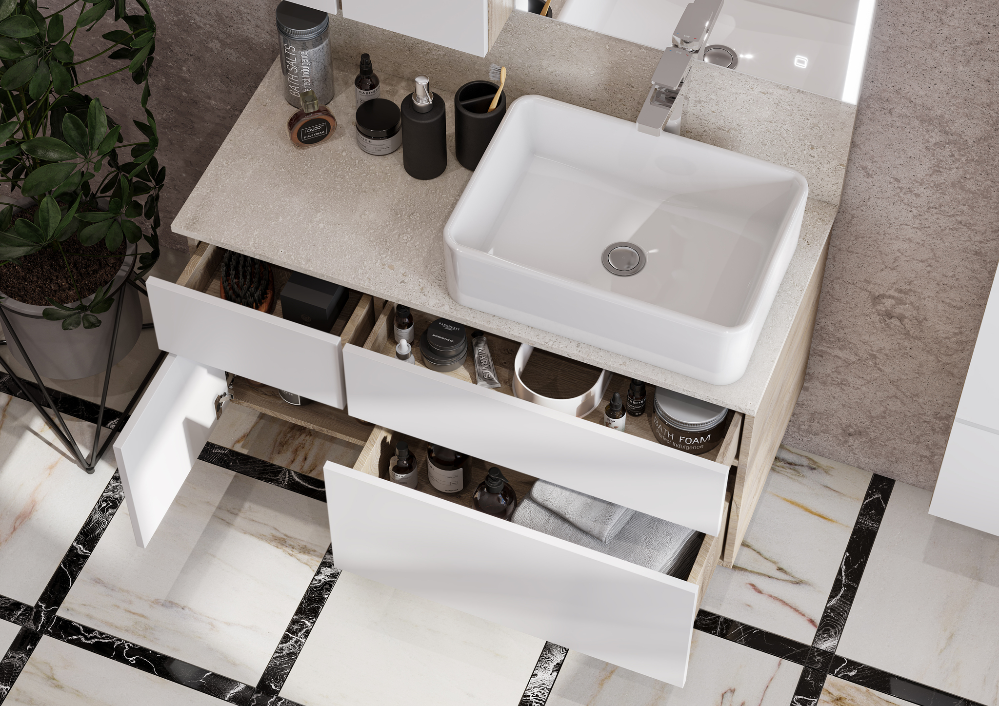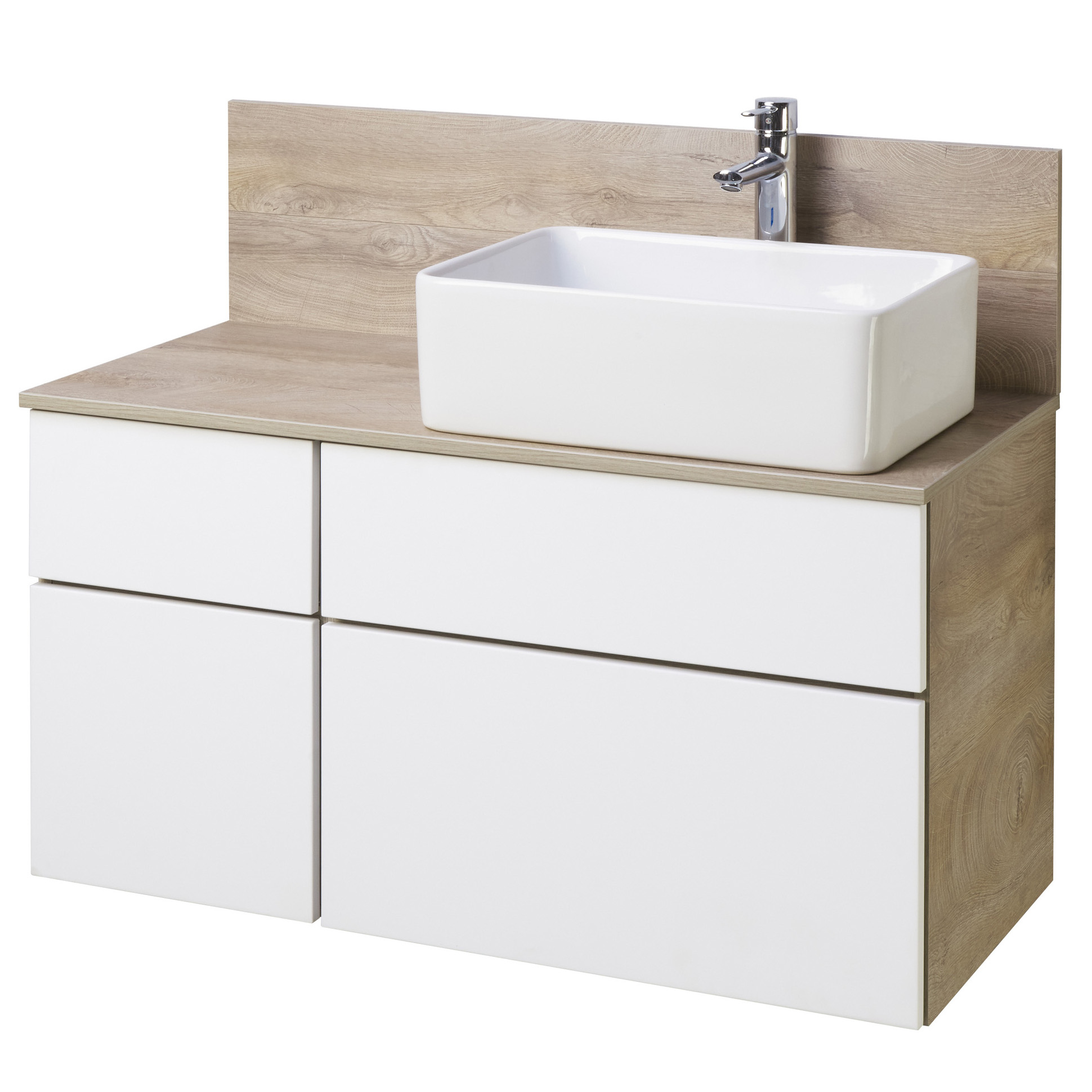 Тумба со столешницей и раковиной Aquaton Мишель 100 см (Мила) дуб эндгрейн/ белый 1A2441K1MIX40