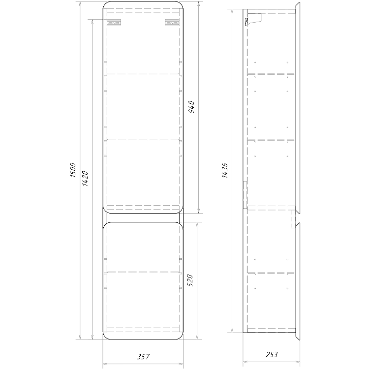 Корпус пенала Aqwella Vento 36х150 см (3 цвета фасада) VEN0535