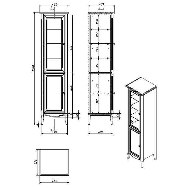 | Система хранения | 2 дверцы/ 3 полки стекло/ 1 полка ЛДСП |