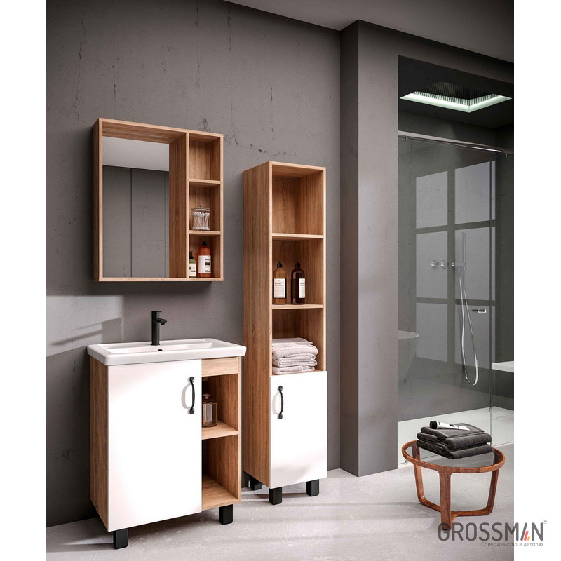 Пенал напольный Grossman Флай 160 см дуб сонома/белый 303001