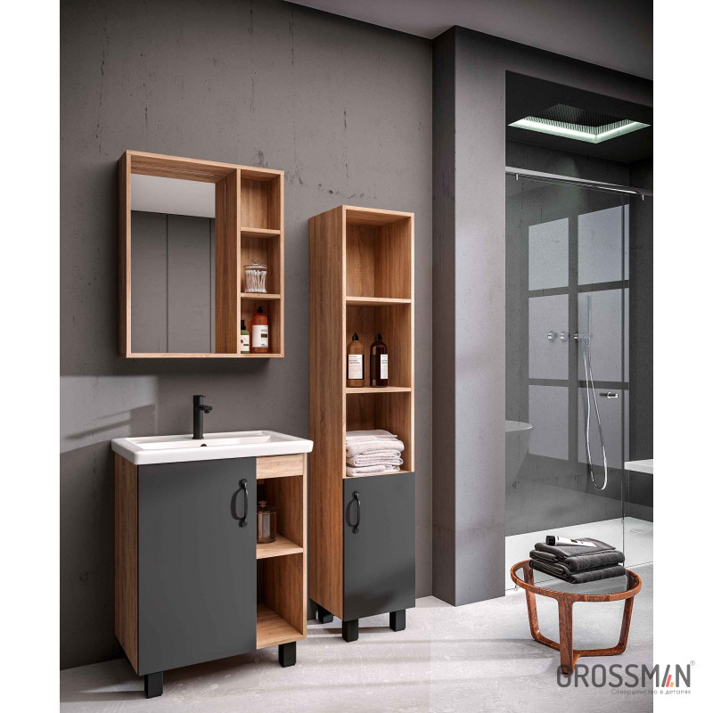 Пенал напольный Grossman Флай 160 см дуб сонома/серый 303002