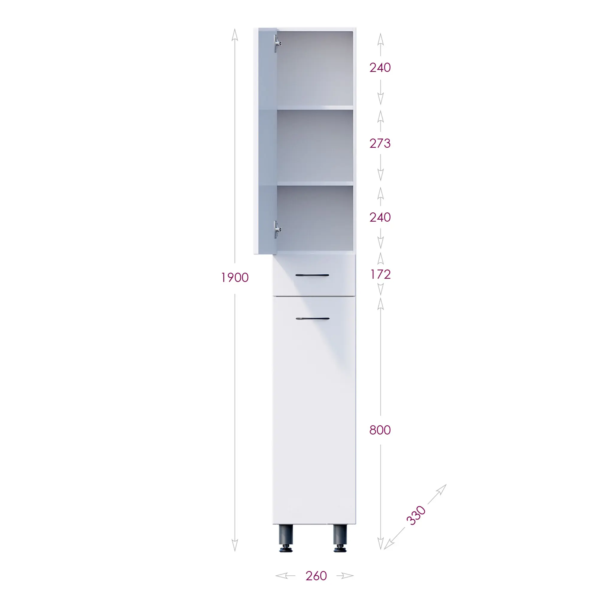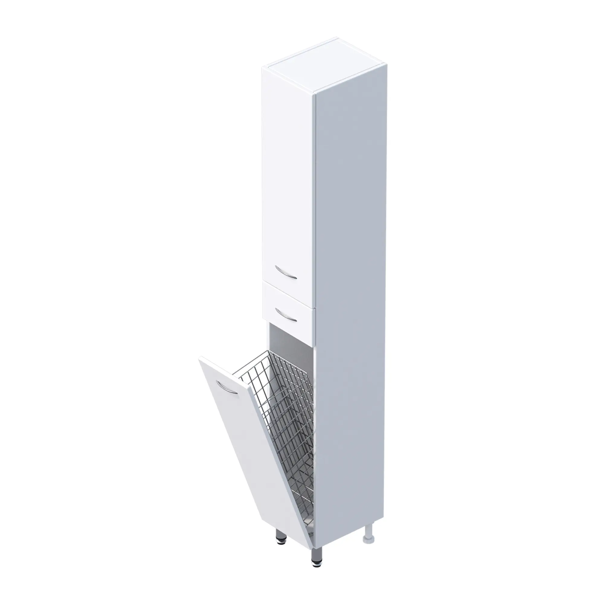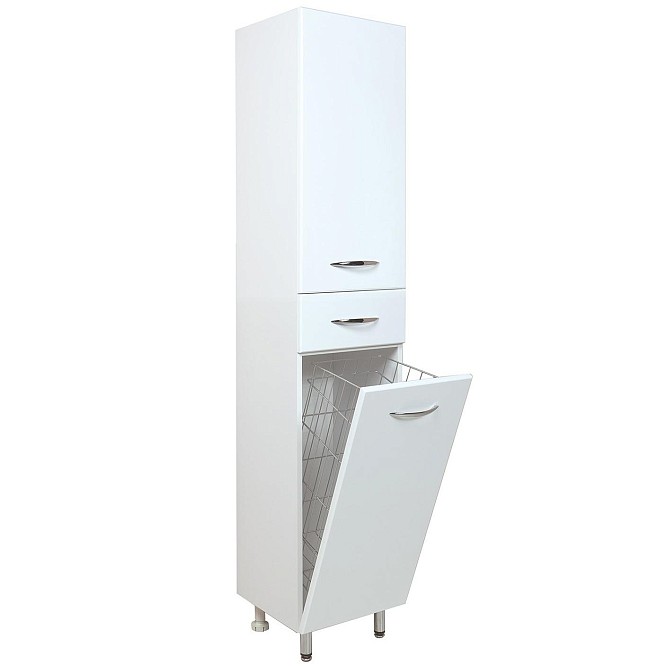 Напольный пенал для ванной комнаты с корзиной для белья Onika МОДЕРН 26, благодаря простому минималистичному дизайну, белому глянцевому фасаду, подойдет под любой интерьер ванной комнаты. Большое отделение сверху за распашной дверцей с механизмом плавного закрывания, небольшой ящик с направляющими полного выдвижения посередине и отделение с корзиной для белья внизу шкафа обеспечит бережное хранение всех необходимых в ванной комнате вещей. Размер бельевой корзины: 180*240*650. Корпус пенала выполнен из ЛДСП, фасад - из МДФ в пленке, специально предназначенных для использования в условиях высокой влажности. В комплекте - 3 хромированные ручки и 4 ножки: 2 декоративные и 2 пластиковые.