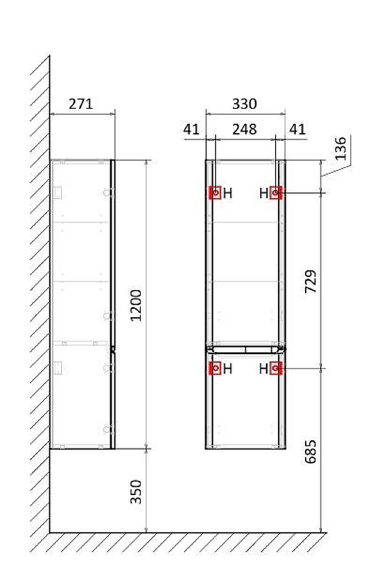 Пенал подвесной AQUAme S4 33х120 см бежевый AQM9004BG