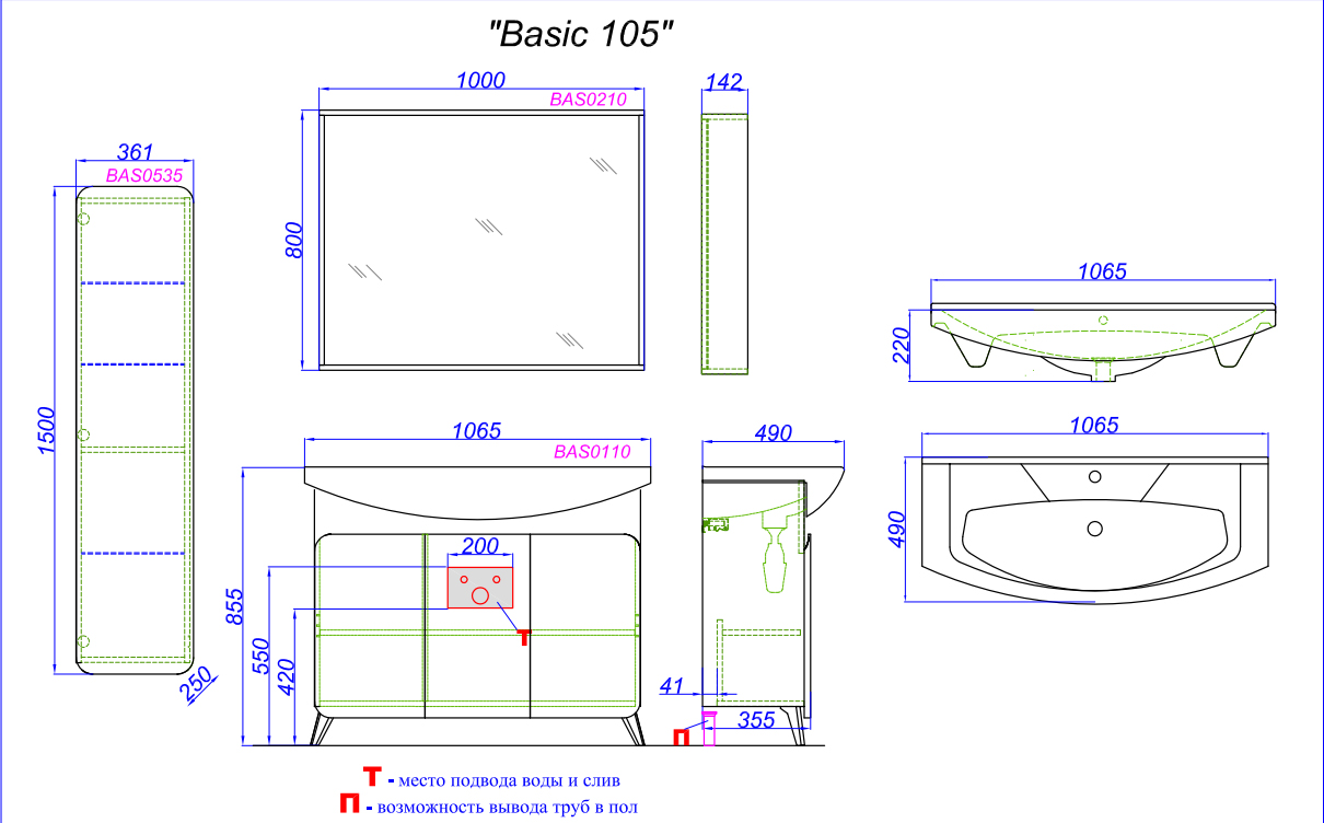 Пенал подвесной Aqwella Basic 36х150 см дуб золотой BAS0535DZ