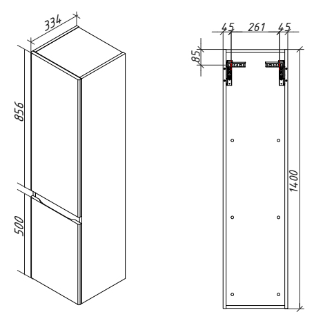 Пенал подвесной Caprigo Forte 35х140 см 36150L/R eml эмаль/цвета разные