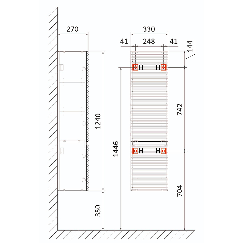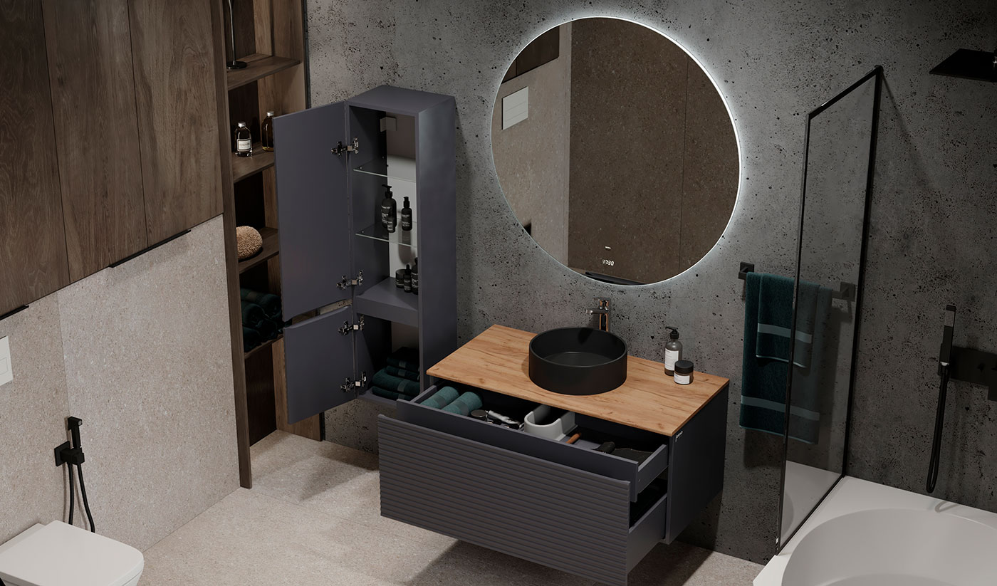 Пенал подвесной Jorno Cossety 124 см антрацит Coss.04.124/P/A/JR