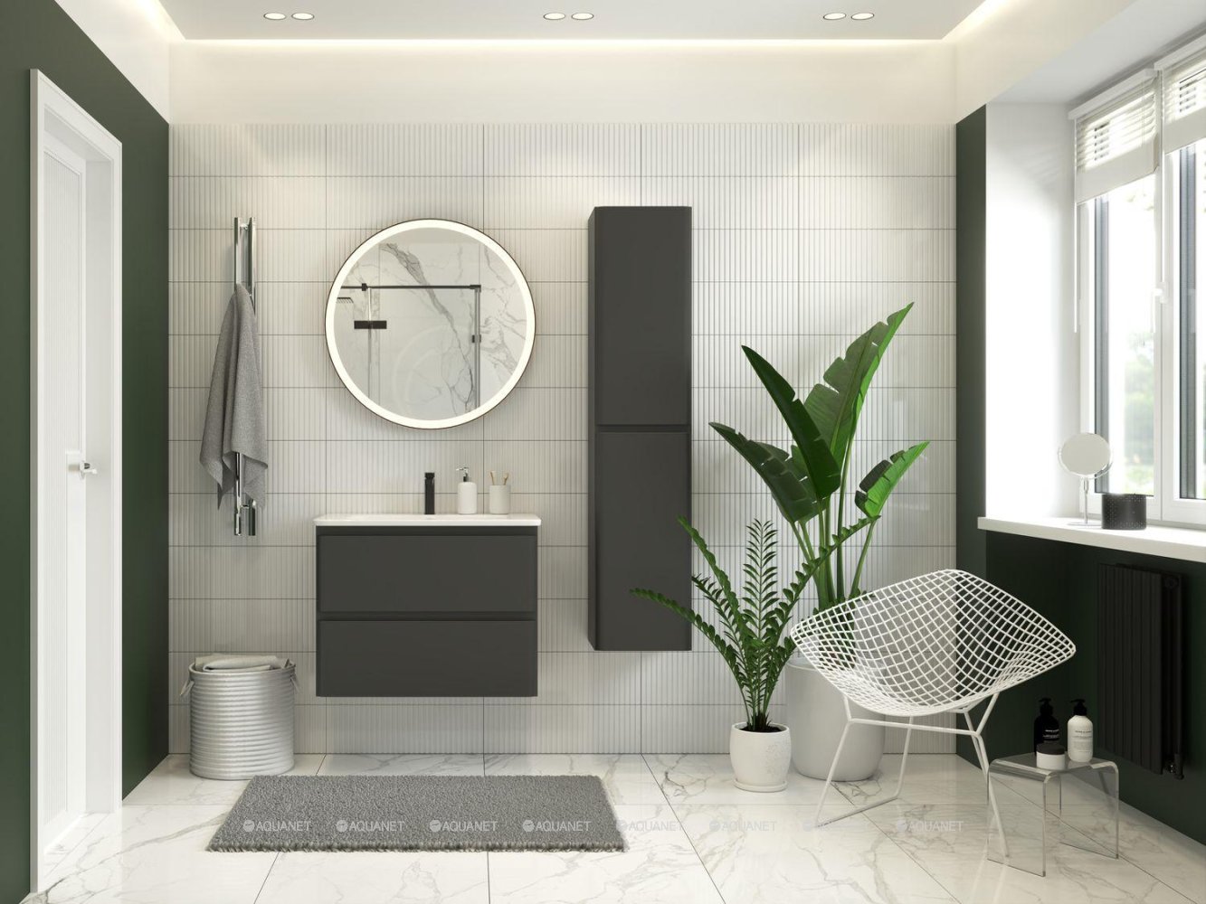 Пенал подвесной универсальный Aquanet Эмбер 35х160 см черный матовый 330472