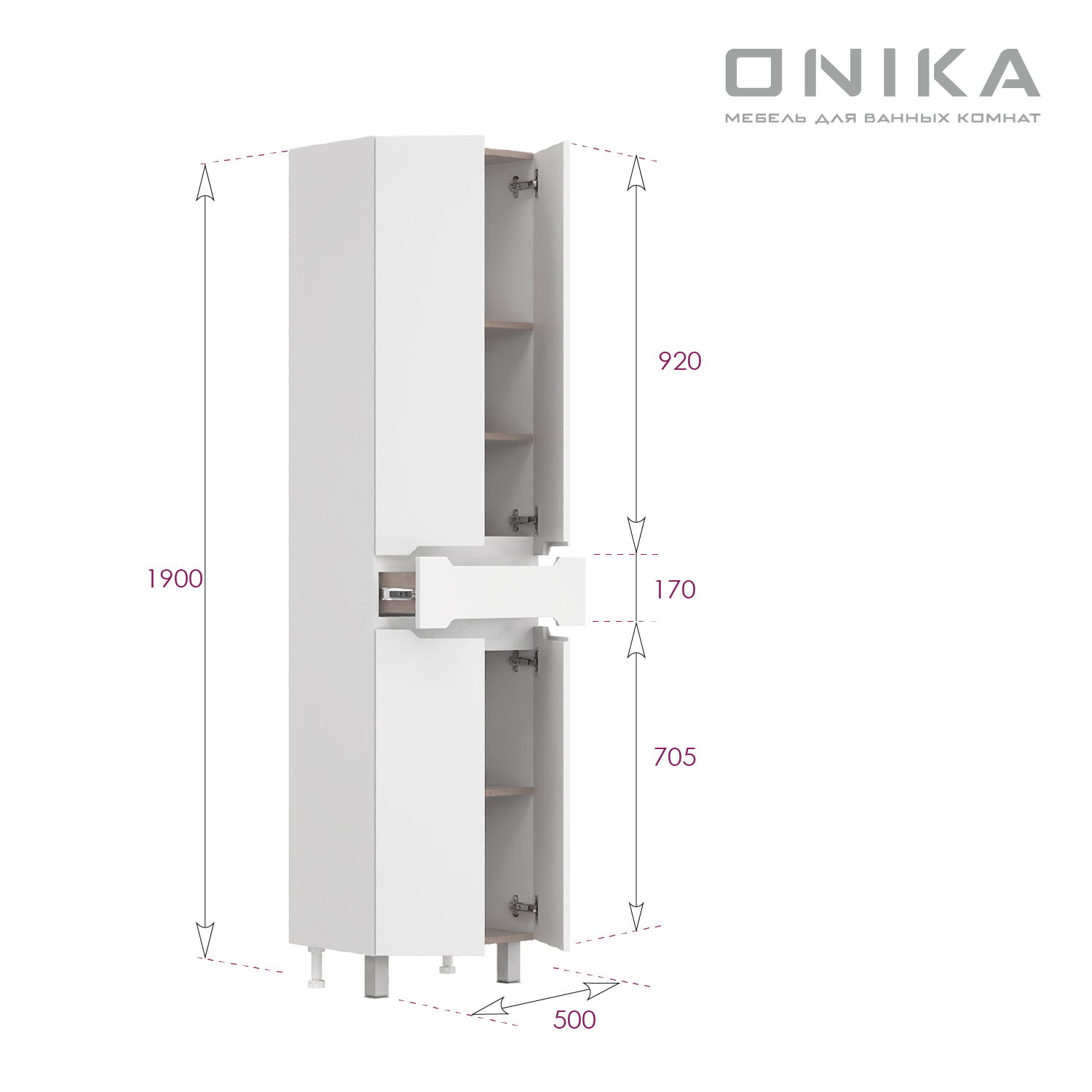 Пенал универсальный напольный Onika Айленд 50х180 см белый 405003