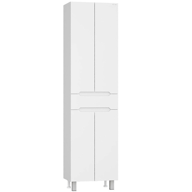 Напольный пенал для ванной комнаты Onika Айленд 50 сочетает в себе стильный минималистичный дизайн, белую глянцевую поверхность и высочайшее качество исполнения. Пенал имеет два отделения за распашными дверцами с доводчиками, полки внутри регулируются по высоте. Ящик посередине имеет надежные направляющие полного выдвижения. Ручки, изящно интегрированные в фасады, позволяют сделать эксплуатацию мебели более удобной и практичной. Корпус пенала выполнен из ЛДСП, фасад - из ЛМДФ в пленке, устойчивых к механическим воздействиям, перепадам температур и высокой влажности. Ножки (2 декоративных и 2 пластиковых) идут в комплекте с пеналом.