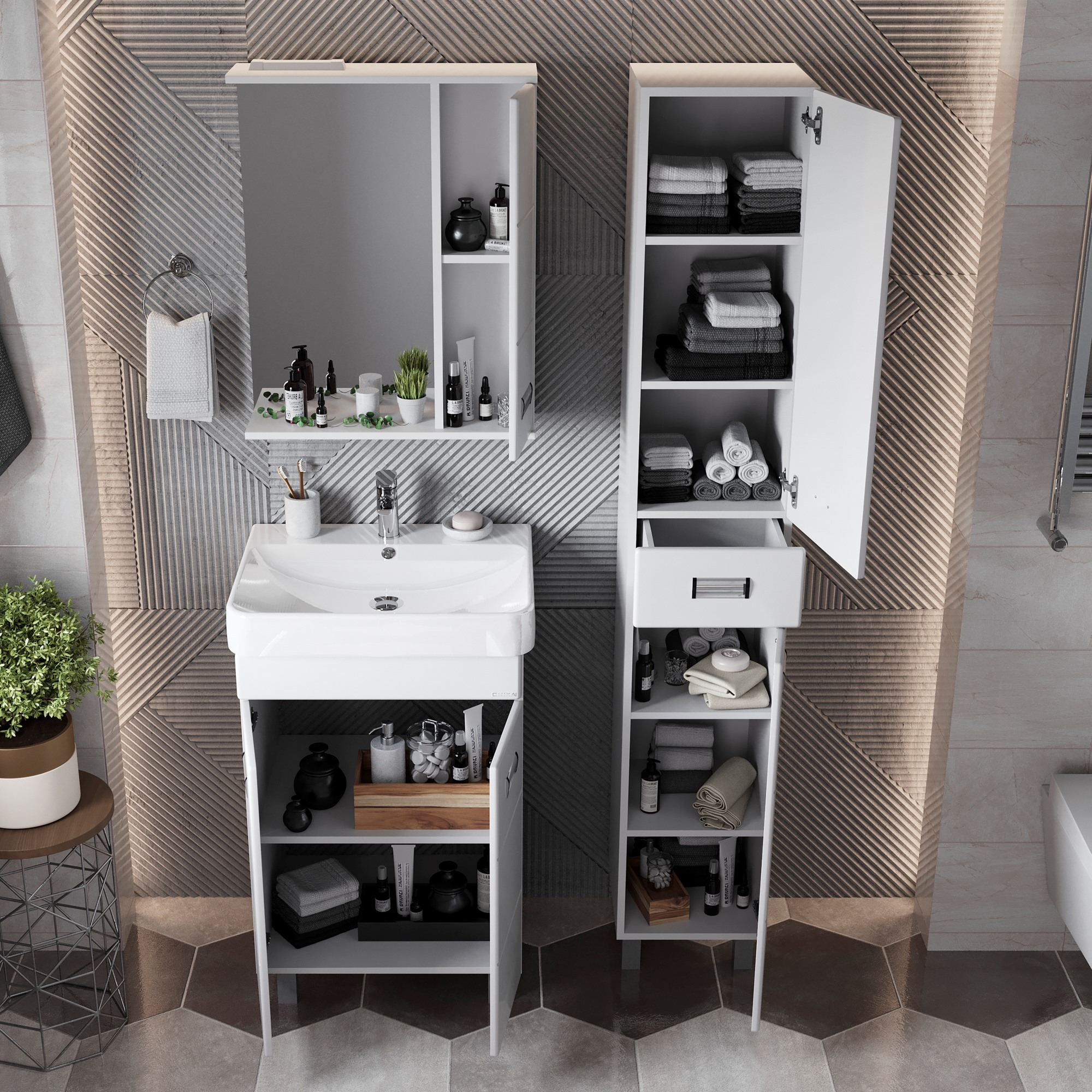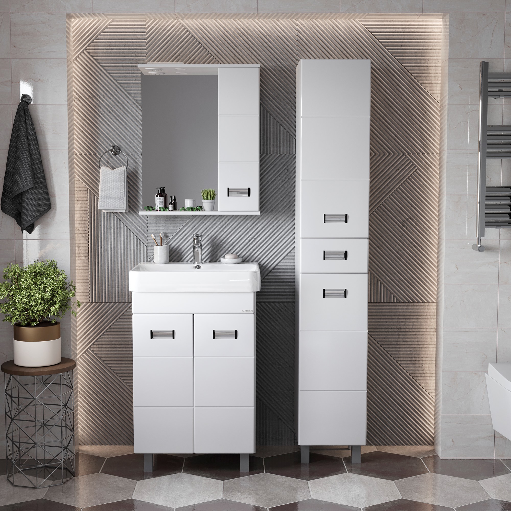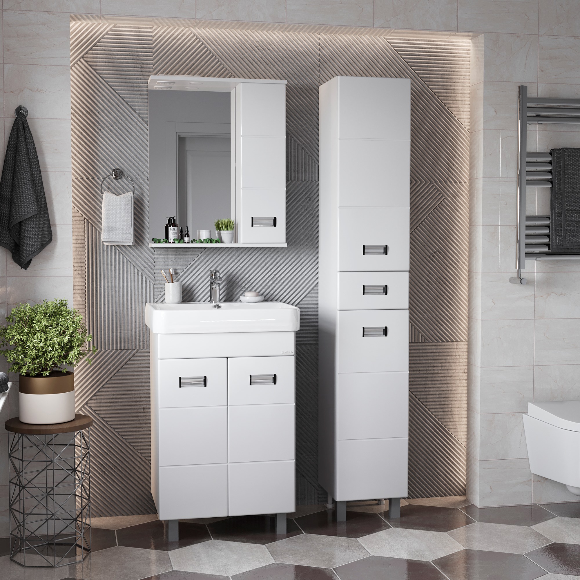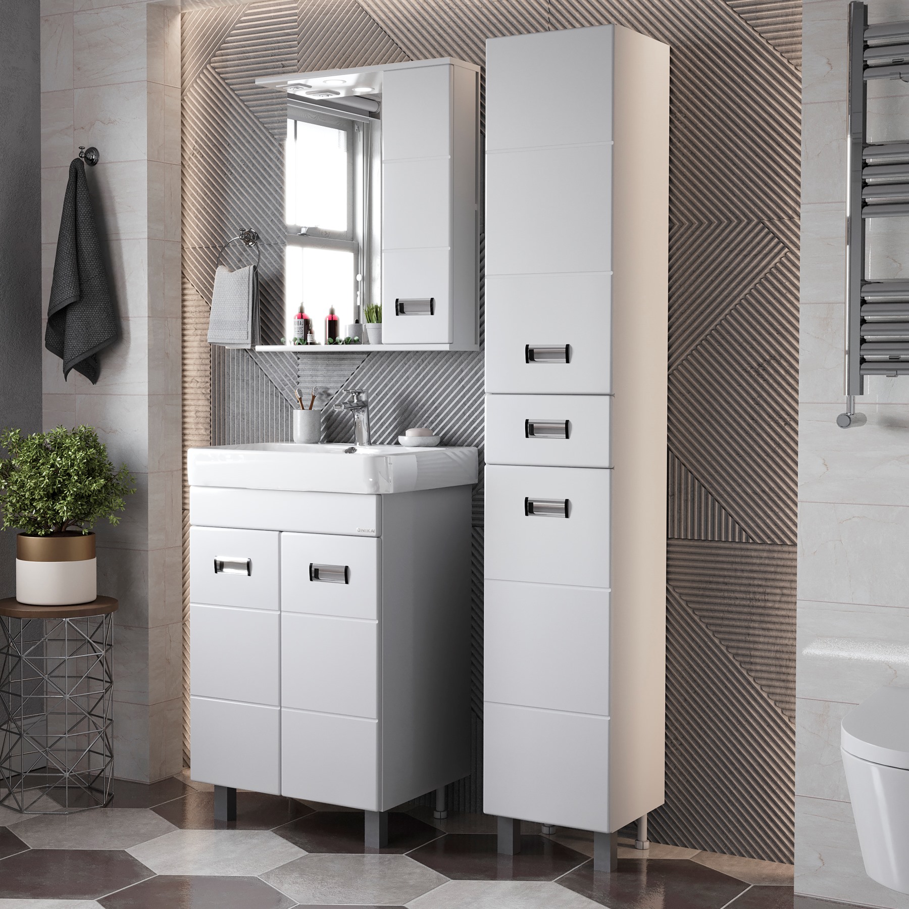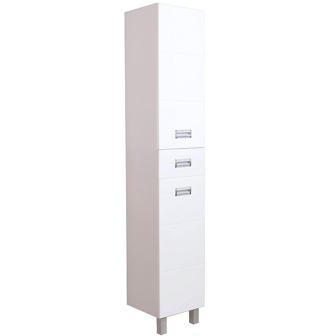 Напольный шкаф пенал для ванной комнаты Onika БАЛТИКА 32 - это простые функциональные формы и яркий акцент в любом дизайне. Глянцевый белый цвет фасада, ненавязчивая горизонтальная фрезеровка, врезные хромированные ручки и аккуратная лаконичность - все это позволяет коллекции Балтика стать центральным звеном интерьера ванной комнаты. Удобный ящик с направляющими полного выдвижения посередине пенала и два больших отделения, разделенные горизонтальными полочками, за распашными дверями с механизмом плавного закрывания - отличное место для хранения необходимых вещей. Пенал имеет универсальную ориентацию: при установке верх и низ пенала можно менять местами, а дверцы могут открываться как влево, так и вправо. Корпус пенала выполнен из ЛДСП, фасад - из МДФ в пленке, устойчивых к механическим воздействиям, перепадам температур и высокой влажности. 2 декоративных и 2 пластиковых ножки с регулировкой по высоте идут в комплекте с пеналом.