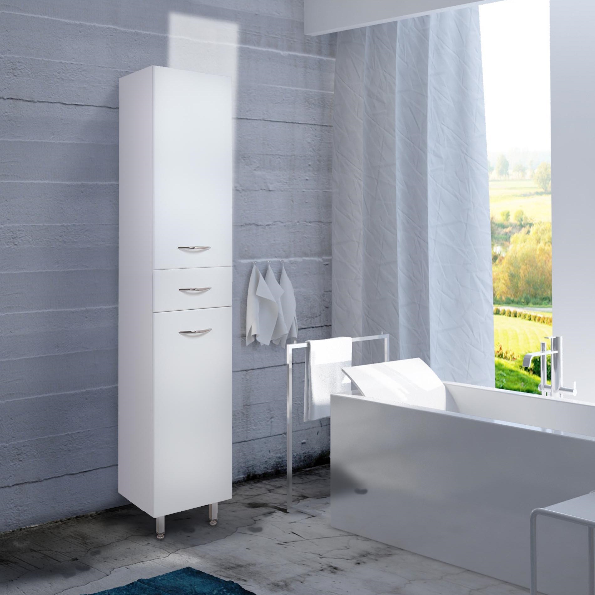 Напольный пенал для ванной комнаты Onika МОДЕРН 26, благодаря простому минималистичному дизайну и белому глянцевому фасаду, подойдет под любой интерьер ванной комнаты. Удобный ящик с направляющими полного выдвижения посередине пенала и два больших отделения за распашными дверями с механизмом плавного закрывания - отличное место для хранения необходимых вещей. Корпус пенала выполнен из ЛДСП, фасад - из МДФ в пленке, устойчивых к механическим воздействиям, перепадам температур и высокой влажности. Пенал имеет универсальную ориентацию: при установке верх и низ пенала можно менять местами, а дверцы могут открываться как влево, так и вправо. В комплекте - 3 хромированные ручки и 4 ножки: 2 декоративные и 2 пластиковые.