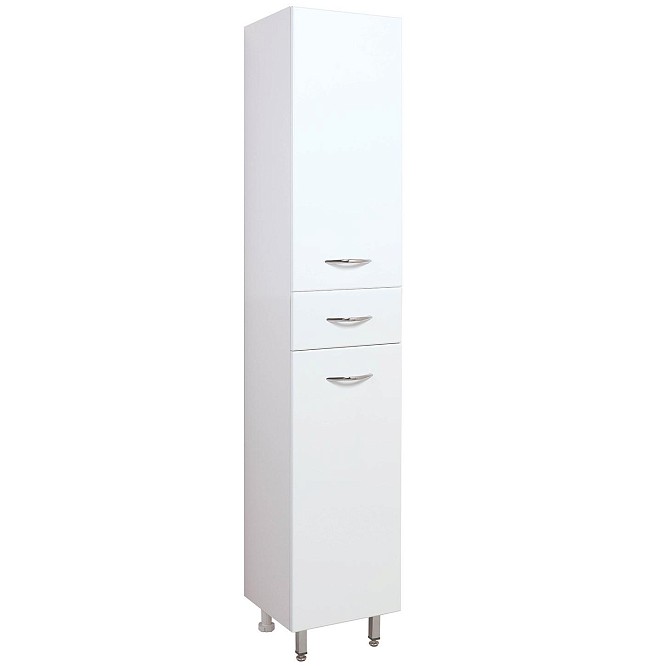 Напольный пенал для ванной комнаты Onika МОДЕРН 32, благодаря простому минималистичному дизайну и белому глянцевому фасаду, подойдет под любой интерьер ванной комнаты. Удобный ящик с направляющими полного выдвижения посередине пенала и два больших отделения за распашными дверями с механизмом плавного закрывания - отличное место для хранения необходимых вещей. Корпус пенала выполнен из ЛДСП, фасад - из МДФ в пленке, специально предназначенных для использования в условиях высокой влажности. Пенал имеет универсальную ориентацию: при установке верх и низ пенала можно менять местами, а дверцы могут открываться как влево, так и вправо. В комплекте - 3 хромированные ручки и 4 ножки: 2 декоративные и 2 пластиковые.