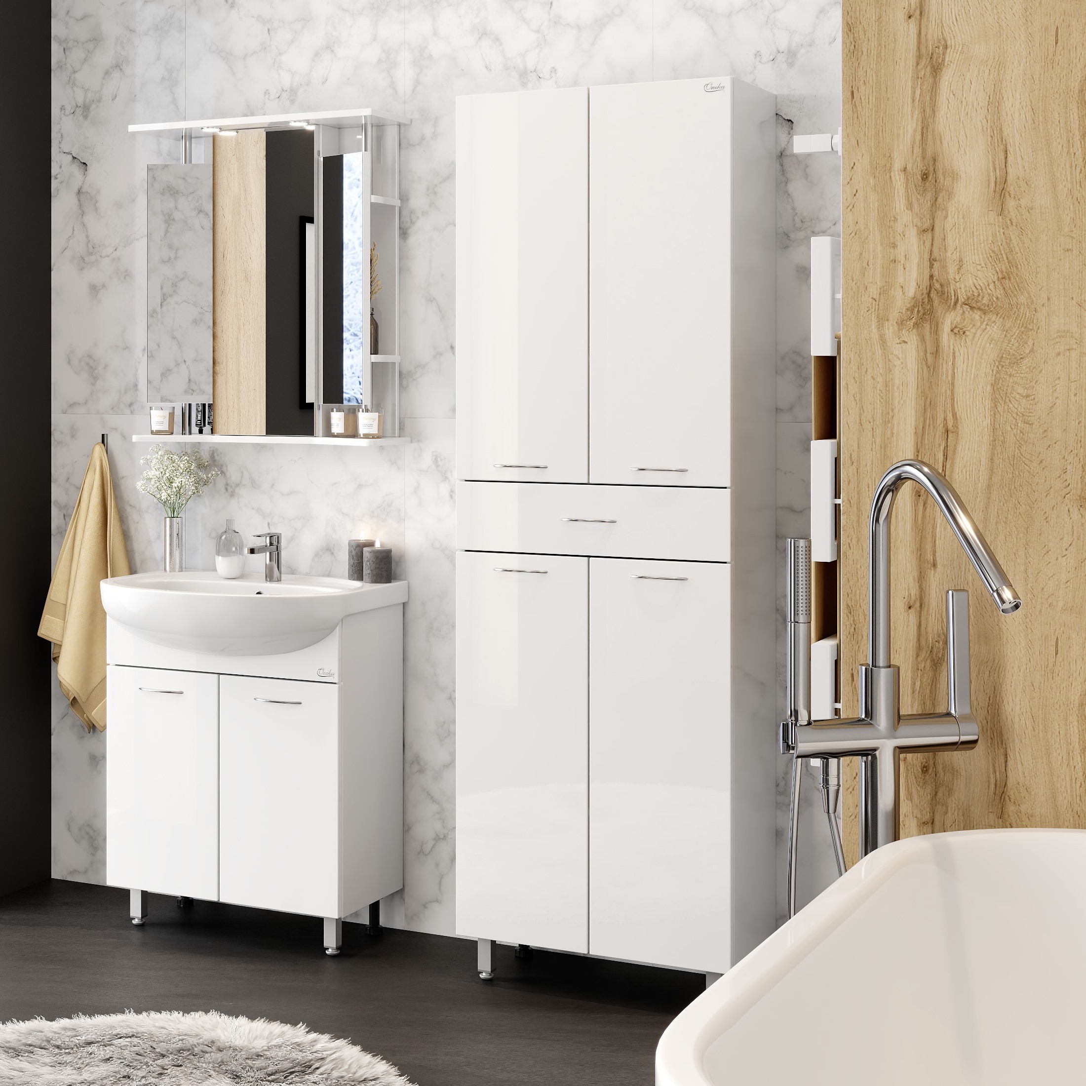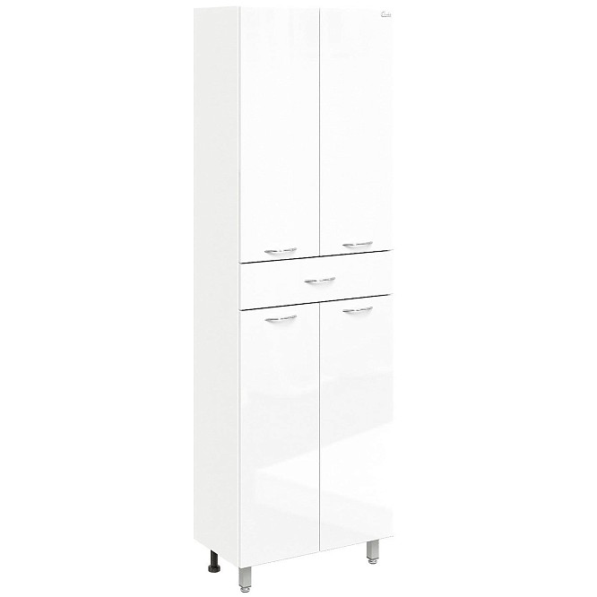 Напольный пенал для ванной комнаты Onika МОДЕРН 60, благодаря простому минималистичному дизайну и белому глянцевому фасаду, подойдет под любой интерьер ванной комнаты. Конструкция пенала предусмотрела огромное пространство для хранения, в котором поместятся все необходимые вещи: большой выдвижной ящик посередине + 4 дверцы, скрывающие полки. Полки регулируются по высоте, дверцы оснащены механизмом плавного закрывания, а ящик - направляющими полного выдвижения. Корпус пенала выполнен из ЛДСП, фасад - из МДФ в пленке, устойчивых к механическим воздействиям, перепадам температур и высокой влажности. В комплекте - 5 хромированные ручек и 4 ножки: 2 декоративные и 2 пластиковые.