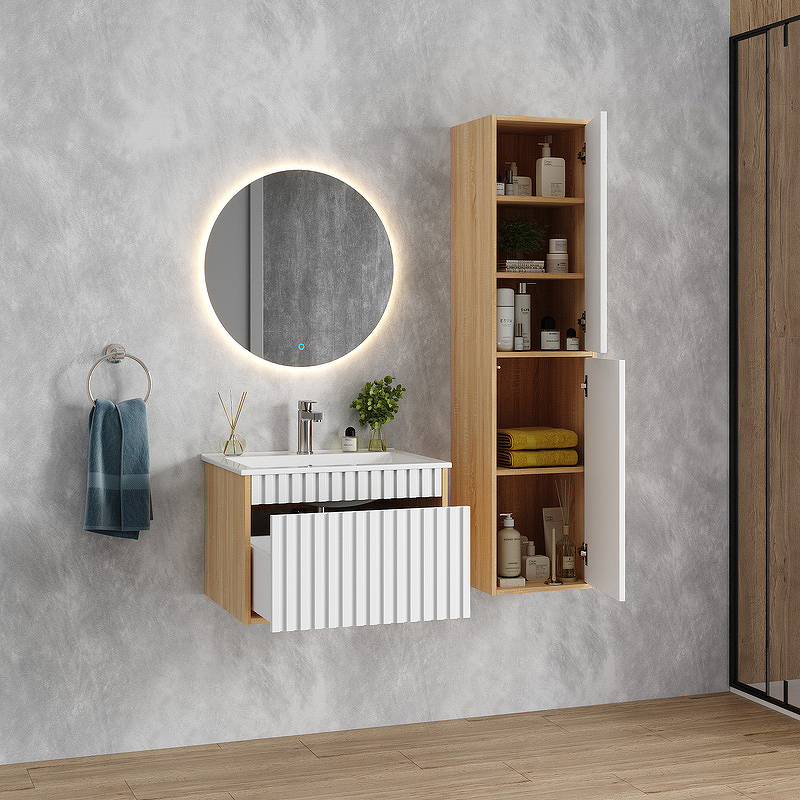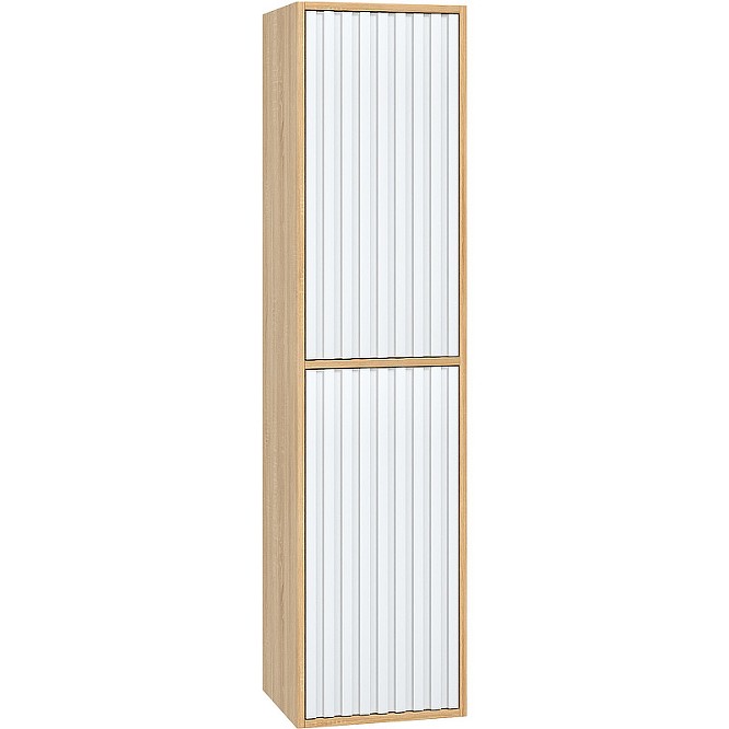 Элегантный подвесной пенал Onika Дайлер 35 представляет собой идеальное дополнение современного интерьера ванной комнаты. Рифленый белый матовый фасад с покрытием SoftTouch и корпус цвета дуба с роскошной текстурой подчеркнет изысканный вкус владельца и станет центральным элементом декора. Две двери с доводчиками открываются и закрываются легким нажатием благодаря опции Push-to-open и скрывают вместительное пространство для хранения необходимых вещей. Подвесная конструкция пенала создает ощущение легкости, не создает неудобств при уборке помещения и визуально расширяет пространство. Корпус пенала выполнен из ЛДСП, фасад - из ЛМДФ в пленке, устойчивых к механическим воздействиям, перепадам температур и высокой влажности.