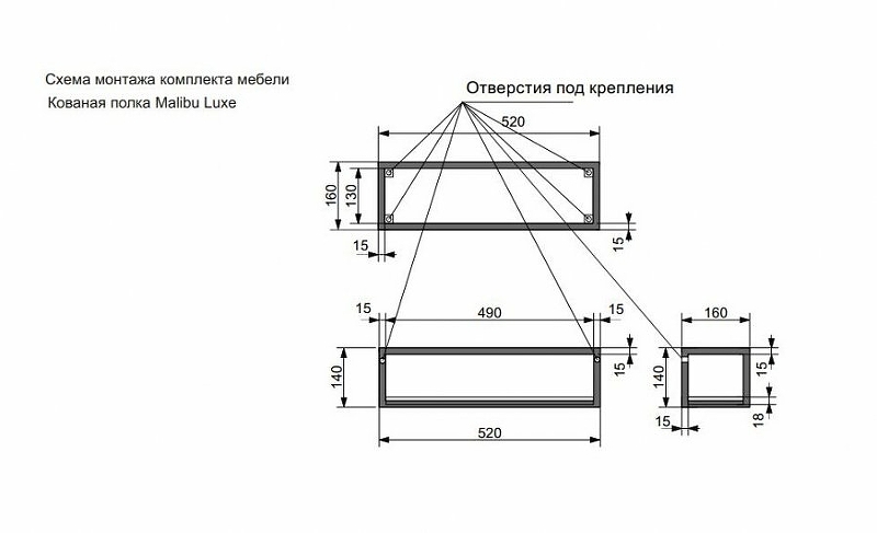 Полка навесная Эстет Malibu Luxe 52 см ФР-00007120