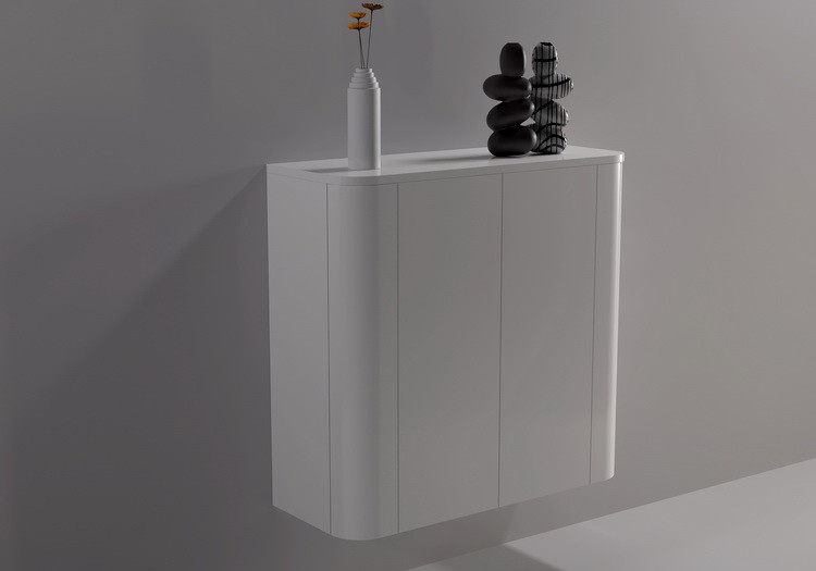 Детали фасадов мебели для ванных комнат производства компании Asrta-Form изготовлены из MDF. Отделка корпусных и фасадных деталей производится лакокрасочными материалами итальянского производства. По Вашему выбору поверхность мебели может быть матовой или глянцевой, а также возможны комбинированные варианты. Раковины изготовлены из литого мрамора и имеют отверстие под смеситель в штатных местах, утвержденных производителем