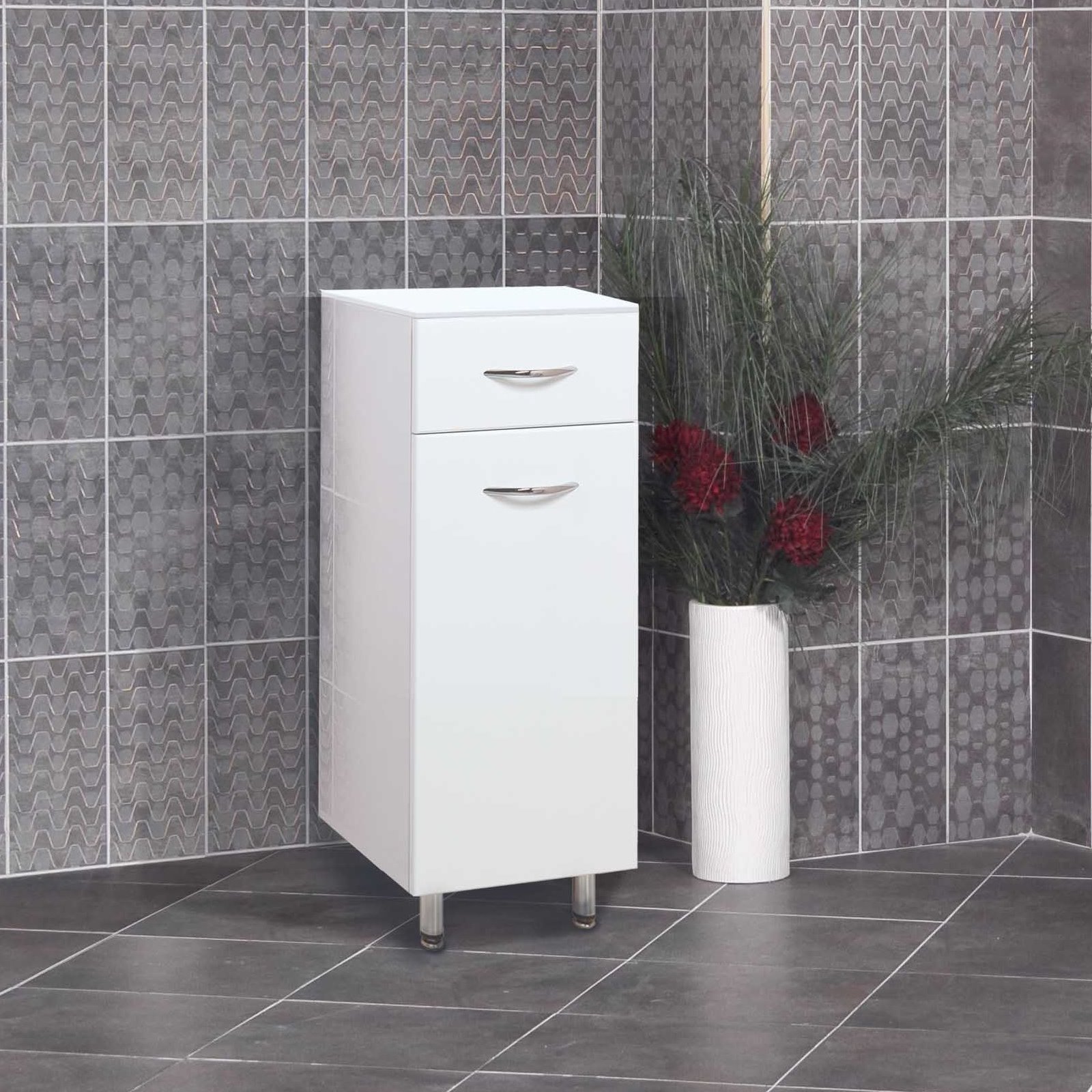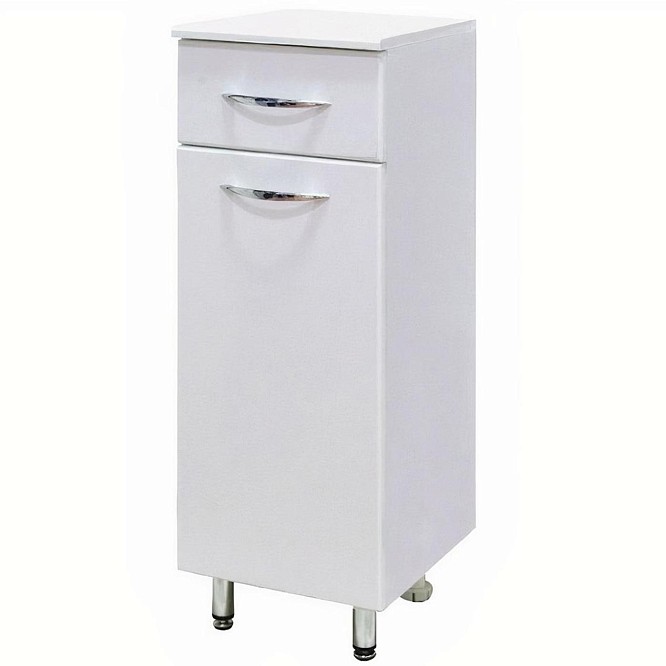 Напольный полупенал для ванной комнаты Onika КАПРИЗ 30, благодаря простому минималистичному дизайну, белой глянцевой поверхности, подойдет под любой интерьер ванной комнаты. Оптимальная высота пенала позволяет использовать его поверхность как дополнительную столешницу, небольшой удобный ящик с направляющими полного выдвижения подойдет для хранения мелких аксессуаров, а распашная дверца скрывает вместительное внутреннее пространство с двумя регулируемыми по высоте полочками, на которой можно компактно разместить бытовые принадлежности. Корпус пенала выполнен из ЛДСП, фасад - из МДФ в пленке, устойчивых к механическим воздействиям, перепадам температур и высокой влажности. 2 декоративных и 2 пластиковых ножки с регулировкой по высоте, а так же 2 хромированных ручки идут в комплекте с пеналом.