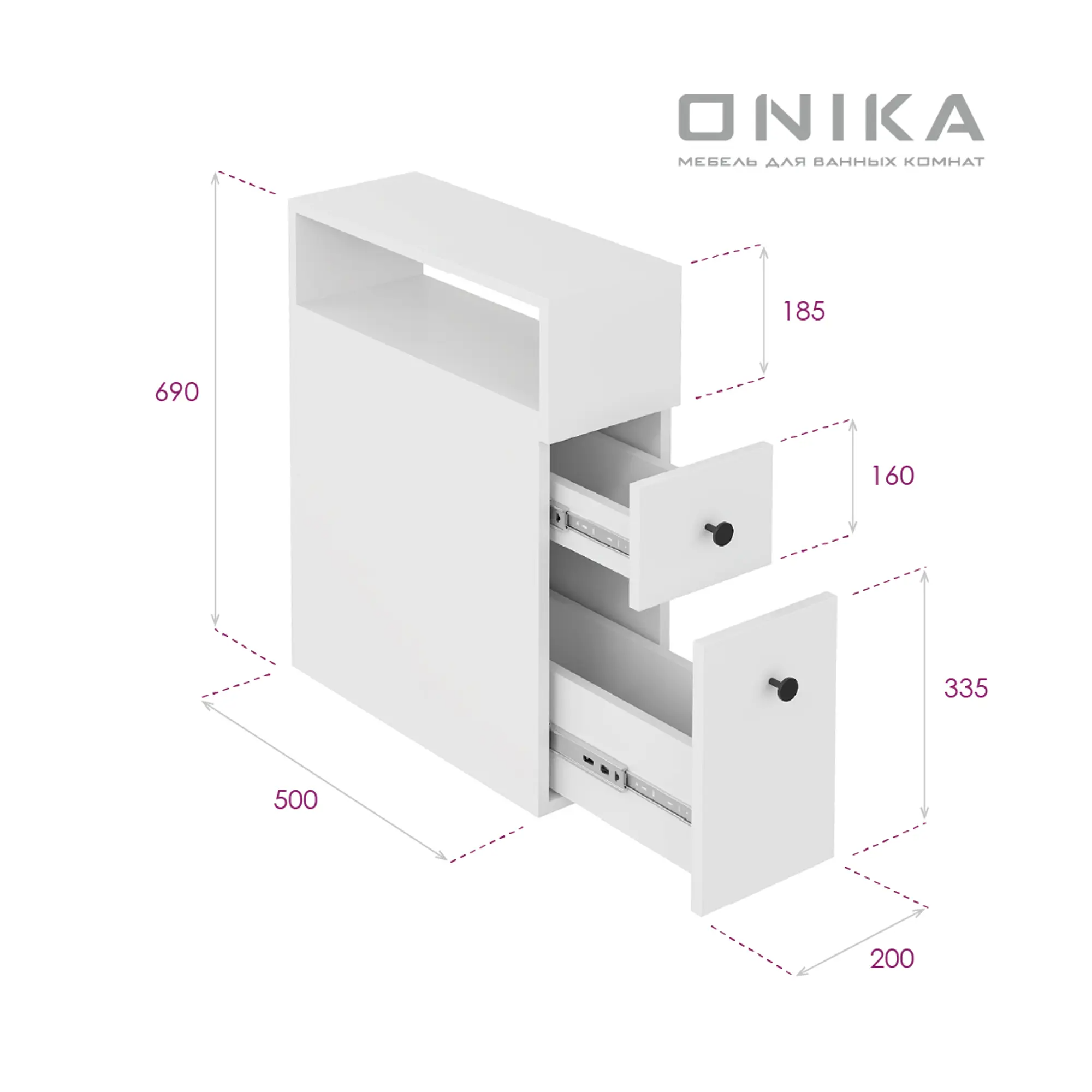 Узкий полупенал Onika Кроун 20 - отличная альтернатива привычным открытым полкам: он позволяет максимально скрыть весь визуальный шум от разноцветных упаковок средств, применяемых в быту. Пенал подходит для размещения в даже в очень компактном пространстве, универсальный белый цвет удачно впишется в любой интерьер. Полупенал прослужит органайзером для хранения средств личной гигиены, туалетной бумаги, для чистящих и моющих средств, для ароматизаторов и для освежителя воздуха, а также прочих аксессуаров, которые удобно держать рядом под рукой. Два выдвижных ящика выдерживают вес до 20 кг. Полупенал выполнен из ЛДСП, устойчивой к механическим воздействиям, перепадам температур и высокой влажности. Шкаф пенал Onika - это не просто элемент интерьера в ванной, а истинный помощник в организации пространства вашего дома. Пенал для ванны универсален и найдет применение в разных комнатах вашего дома: в коридоре он станет отличным органайзером для обуви, аксессуаров и других мелочей; пенал в ванную - удобное место для хранения туалетных принадлежностей, порошков и другой бытовой химии; шкаф пенал напольный в гостиной - идеальное место для книг и декоративных элементов, аккуратно разместит фотографии и мелкие вещи; полупенал в детской можно использовать для хранения игрушек; пенал для кухни можно использовать для хранения посуды.