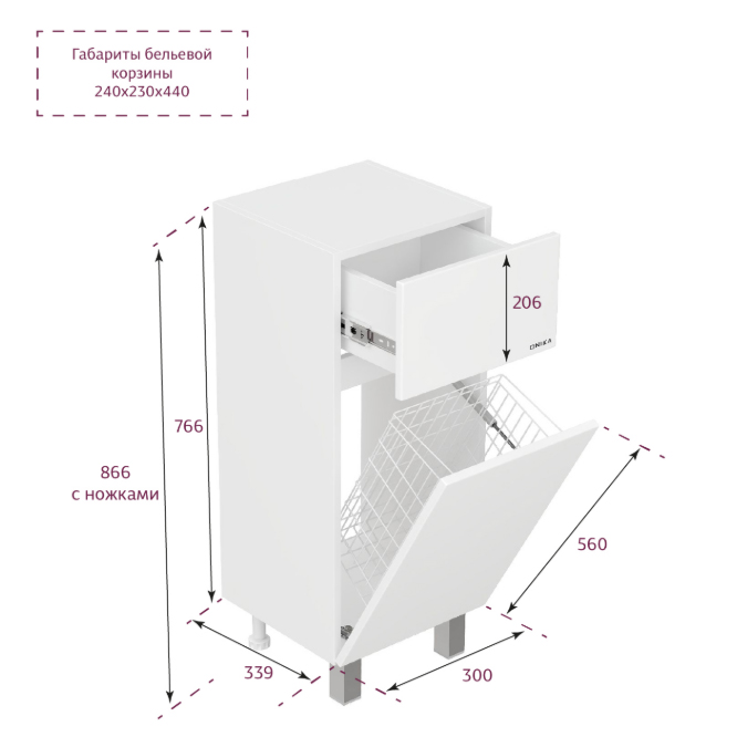 Размер бельевой корзины: 24x23x44 см.