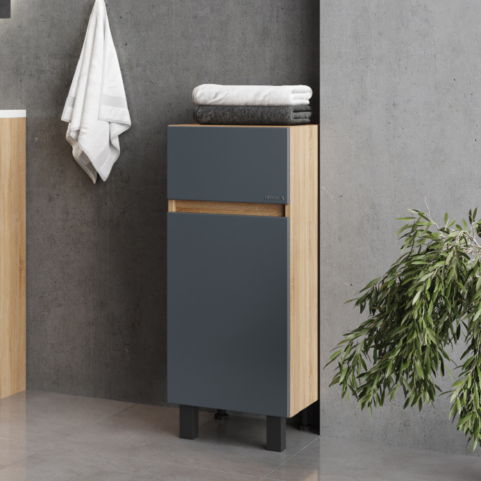 Полупенал напольный с б/к Onika Милтон 30х87 см серый/ дуб сонома 403095