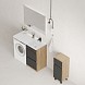Оптимальная высота пенала позволяет использовать его поверхность как дополнительную столешницу, небольшой удобный ящик с направляющими полного выдвижения подойдет для хранения мелких аксессуаров, а за дверцей скрывается отделение с корзиной для белья.