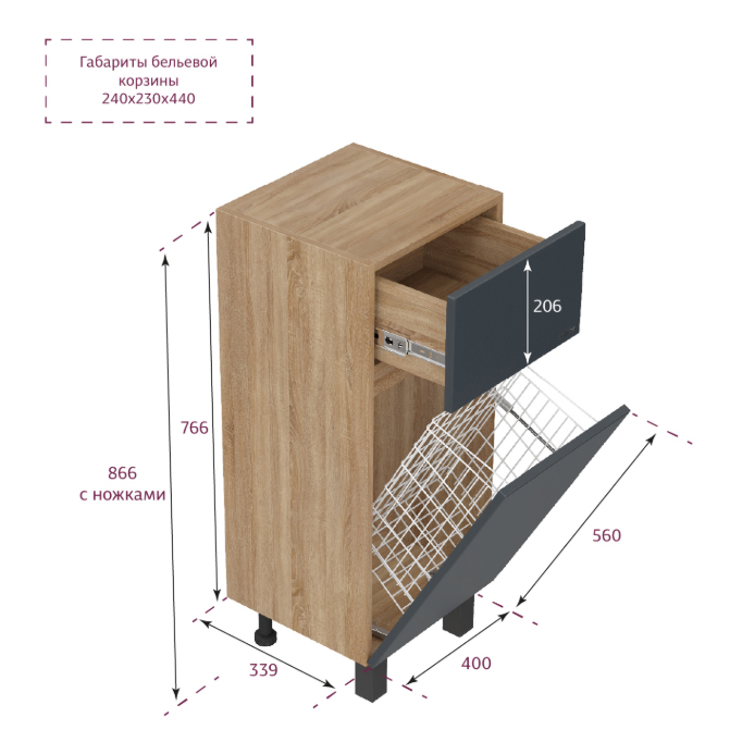 Размер бельевой корзины: 24x23x44 см.