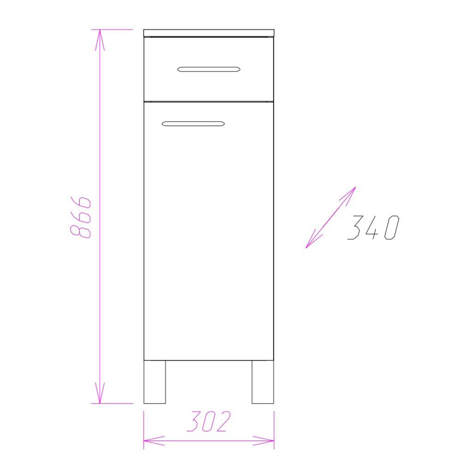 Напольный полупенал для ванной комнаты с корзиной для белья Onika КАПРИЗ 30, благодаря простому минималистичному дизайну и белой глянцевой поверхности, подойдет под любой интерьер ванной комнаты. Оптимальная высота пенала позволяет использовать его поверхность как дополнительную столешницу, небольшой удобный ящик с направляющими полного выдвижения подойдет для хранения мелких аксессуаров, а за дверцей скрывается отделение с корзиной для белья. Размер бельевой корзины: 240*230*435. Корпус пенала выполнен из ЛДСП, фасад - из МДФ в пленке, устойчивых к механическим воздействиям, перепадам температур и высокой влажности. 2 декоративных и 2 пластиковых ножки с регулировкой по высоте, а так же 2 хромированных ручки идут в комплекте с пеналом.