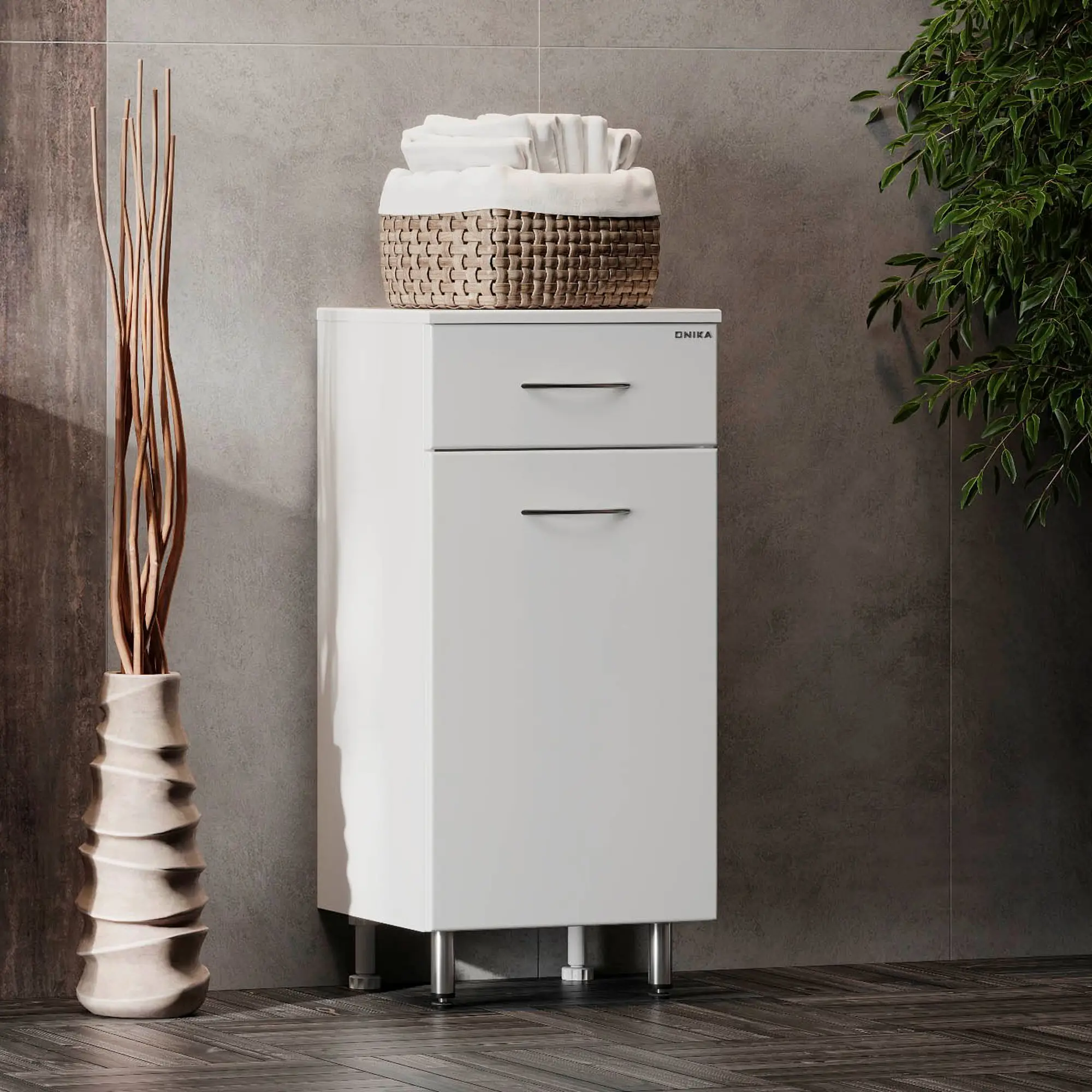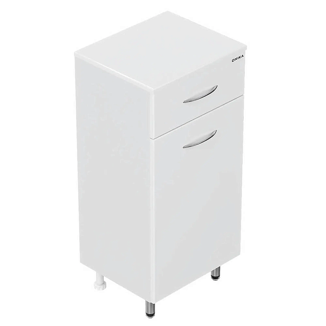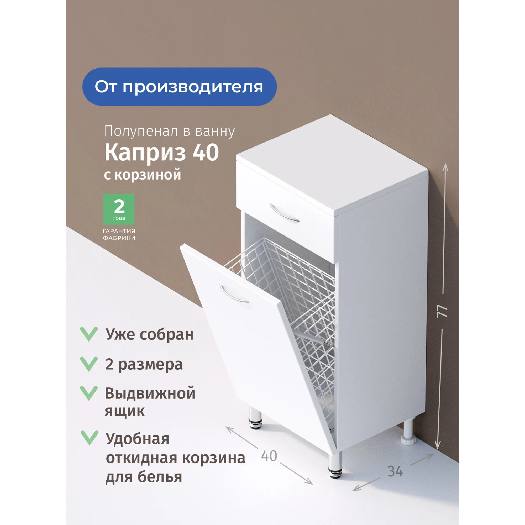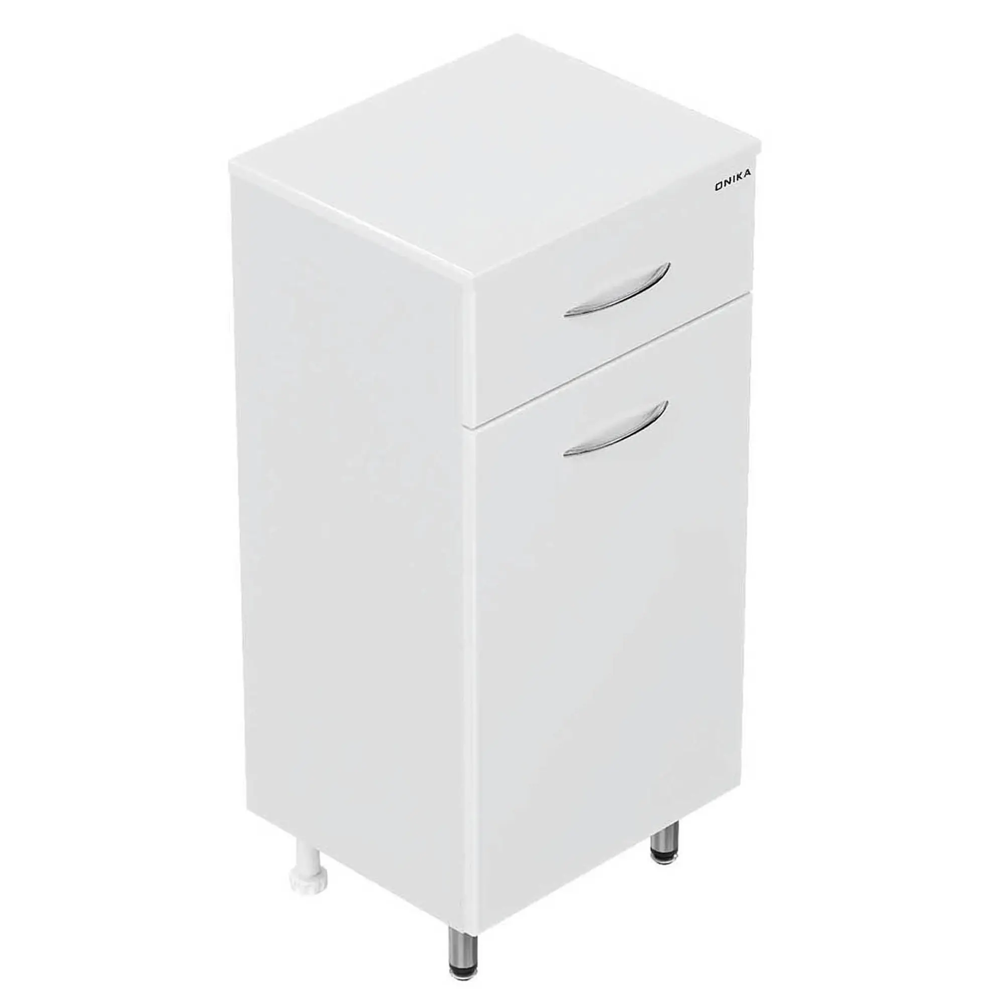 Напольный полупенал для ванной комнаты с корзиной для белья Onika КАПРИЗ 40, благодаря простому минималистичному дизайну и белой глянцевой поверхности, подойдет под любой интерьер ванной комнаты. Оптимальная высота пенала позволяет использовать его поверхность как дополнительную столешницу, небольшой удобный ящик с направляющими полного выдвижения подойдет для хранения мелких аксессуаров, а за дверцей скрывается отделение с корзиной для белья. Корпус пенала выполнен из ЛДСП, фасад - из МДФ в пленке, устойчивых к механическим воздействиям, перепадам температур и высокой влажности. 2 декоративных и 2 пластиковых ножки с регулировкой по высоте, а так же 2 хромированных ручки идут в комплекте с пеналом. Шкаф пенал Onika - это не просто элемент интерьера в ванной, а истинный помощник в организации пространства вашего дома. Шкаф стеллаж - функциональный и стильный предмет, отлично вписывается в интерьер, создавая уют и порядок. Пенал для ванны универсален и найдет применение в разных комнатах вашего дома: в коридоре он станет органайзером для обуви, аксессуаров и других мелочей; пенал в ванную с корзиной для белья - удобное место для хранения белья и туалетных принадлежностей; полупенал в детской можно использовать для хранения игрушек.