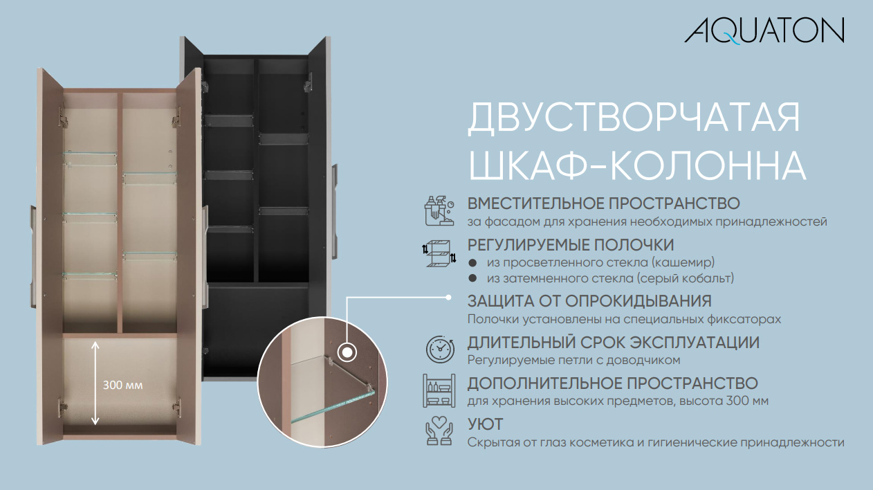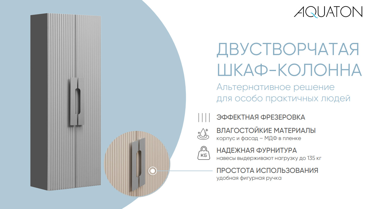 Шкаф-колонна 2 створки Aquaton Ар-Деко 40х110 см серый кобальт 1A284703DD8D0