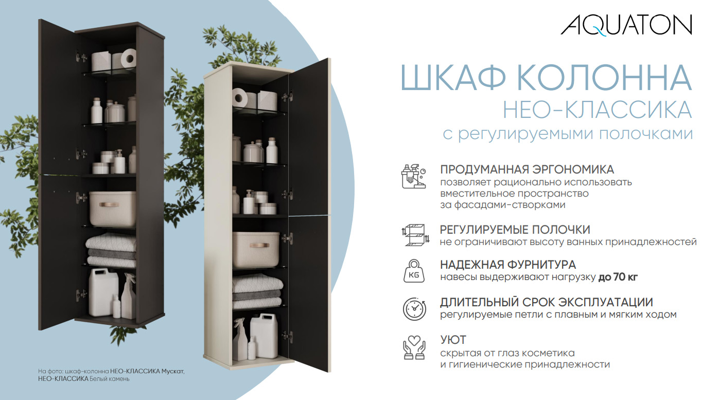 Шкаф-колонна Aquaton Нео-Классика 35х143 см белый камень 1A284603NCTG0