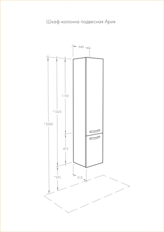 Шкаф-колонна подвесная с бельевой корзиной Aquaton Ария 34х162 см 1A134403AA010