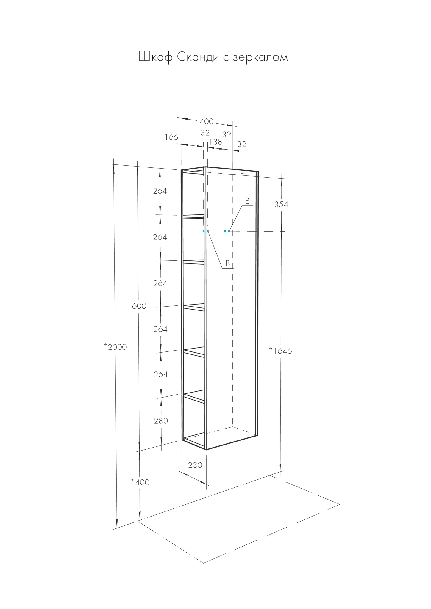 | Система хранения | 1 дверца с доводчиком, полки ВЛДСП |