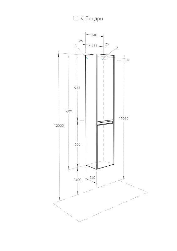 Шкаф-пенал Aquaton Лондри 34х160 см 1A236203LH010